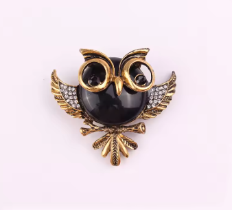Fresh Accessories - Brooch Owl Antique Gold Eyes