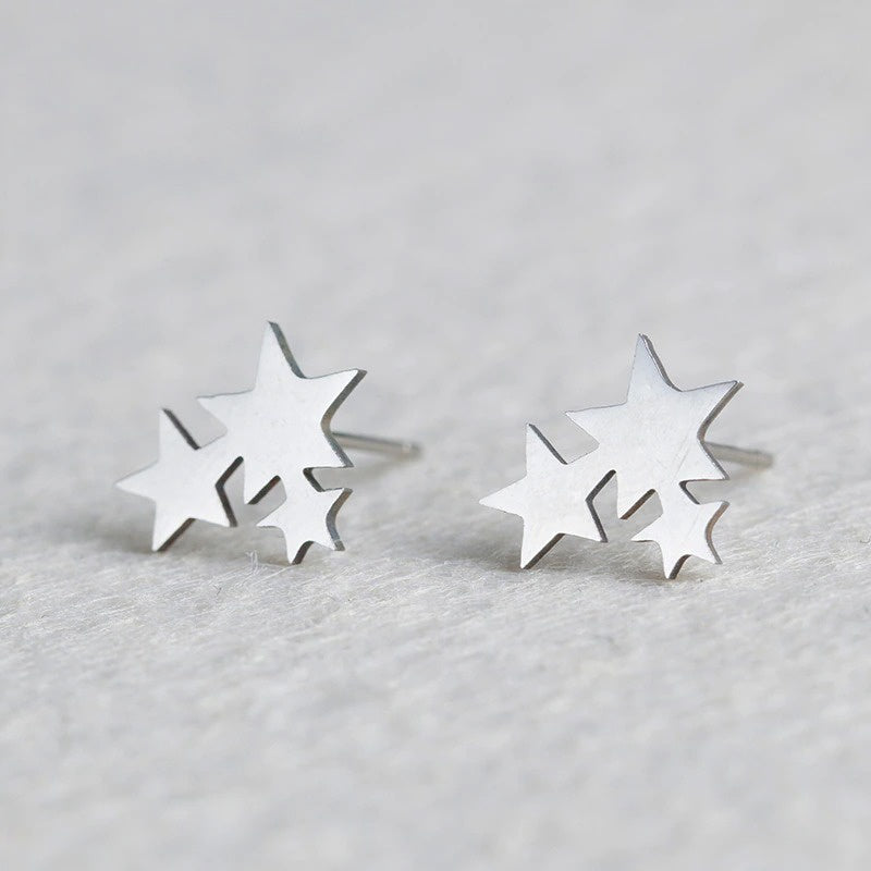 Fresh Accessories Stud Earrings Stainless Steel Silver Star Cluster