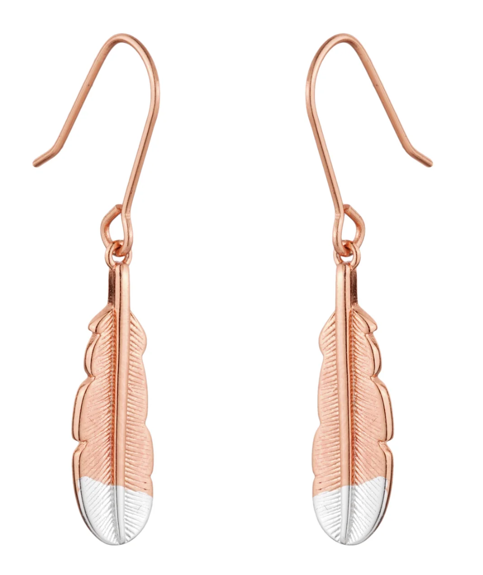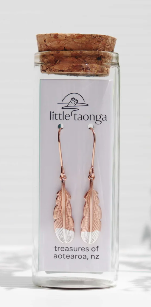 Little Taonga Earrings Rose Gold Huia Feather Pendant Earrings