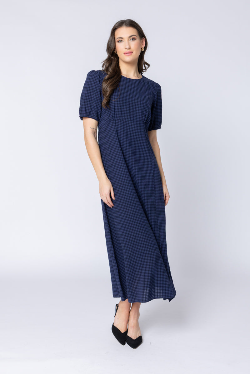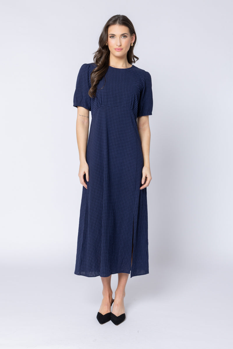Introduce effortless sophistication to your wardrobe with the Leila + Luca Maya Dress in classic Ink Check.
