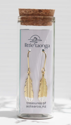 Little Taonga Earrings Gold Huia Feather Pendant Earrings