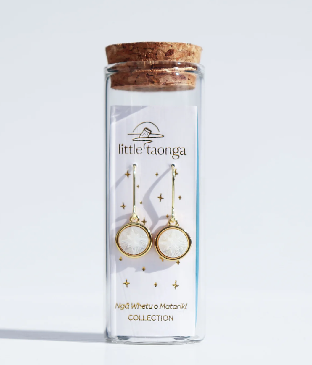 Little Taonga Earrings Gold Mother of Pearl Matariki Whetu