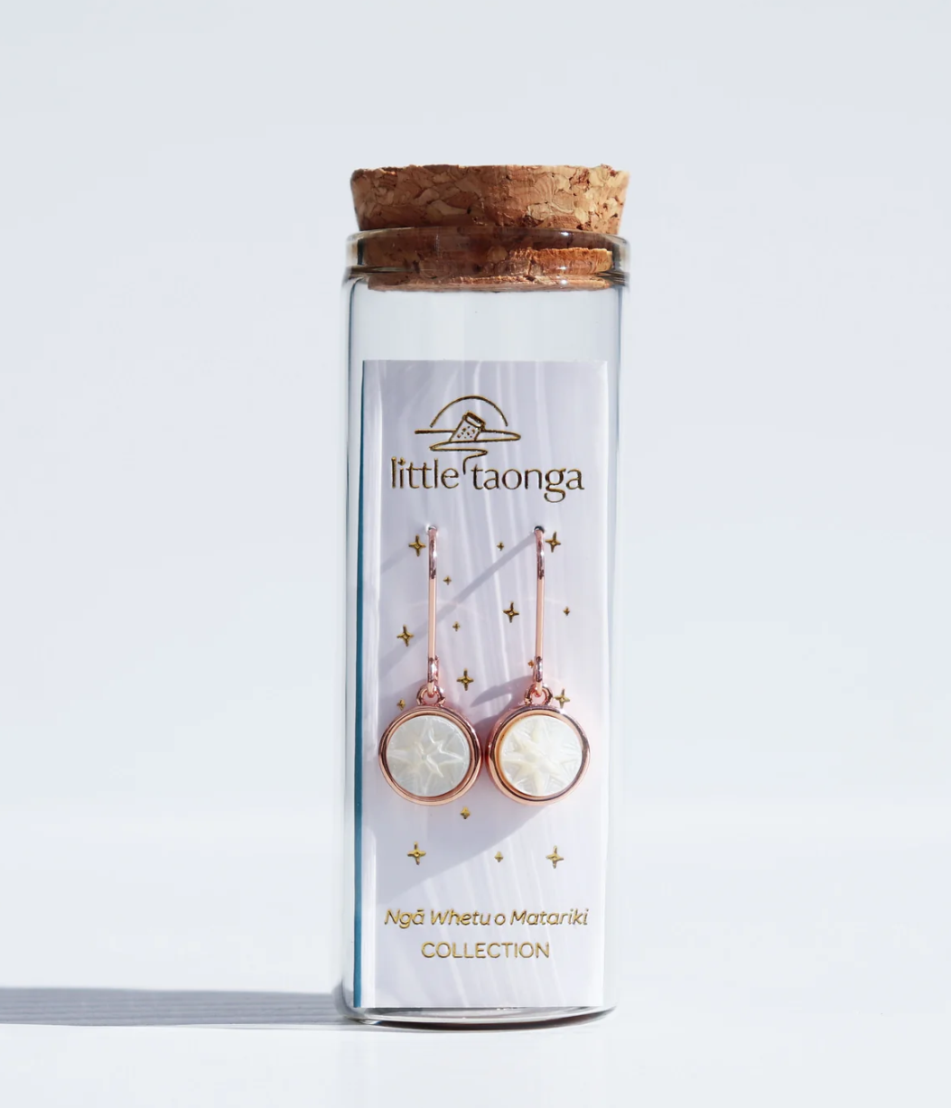 Little Taonga Earrings Rose Gold Mother of Pearl Matariki Whetu