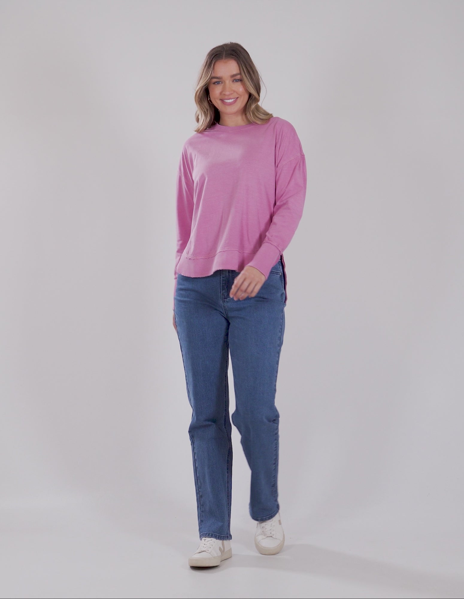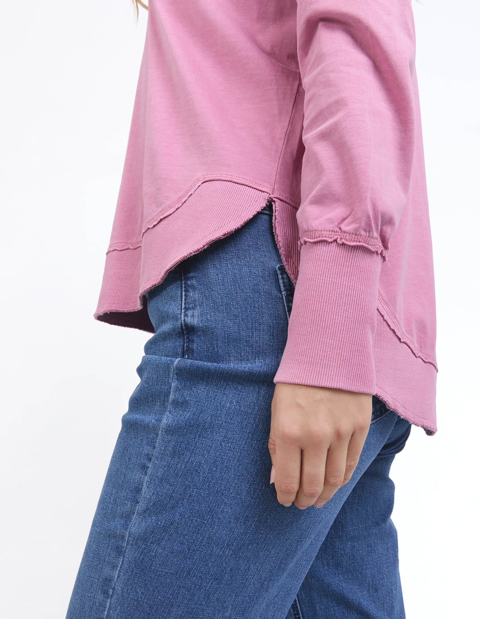 A new crew to the Foxwood range the Farrah Long Sleeve in 100% Fresh Pima Cotton features a classic crew neckline and raw edge detail. This relaxed fit jumper is an easy everyday wear.