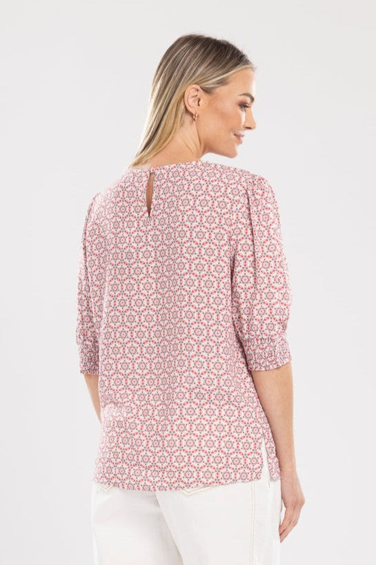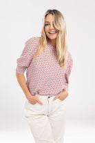 Add a touch of bohemian charm to your wardrobe with the Mi Moso Finley Top in a beautiful Mosaic Print. This vibrant top features a detailed geometric pattern in shades of red and off-white, offering a feminine and stylish look.