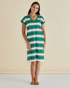 Betty Basics Zena T-Shirt Dress - Navy/Green Stripe