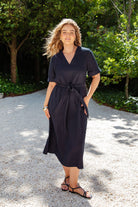 Say hello to the lily midi dress, relaxed fit , mid length, and waist tie. Style it your way for an effortless look that works for any day of the week.