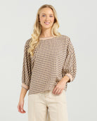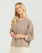 Discover one of our best-selling easy-fit tops, designed for effortless style and this season updated in a cute check fabric, giving it a playful charm. The finishing touches include a striped rib neck and cuffs, adding a luxe finishing touch. Embrace comfort and fashion with this top, a must-have for any wardrobe.
