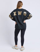 Own the cool-girl casual look in the Foxwood Metallic Interval Crew! This stunning black jumper takes the classic comfort you love from Foxwood and elevates it with brilliant metallic gold printing for a bold, standout style.