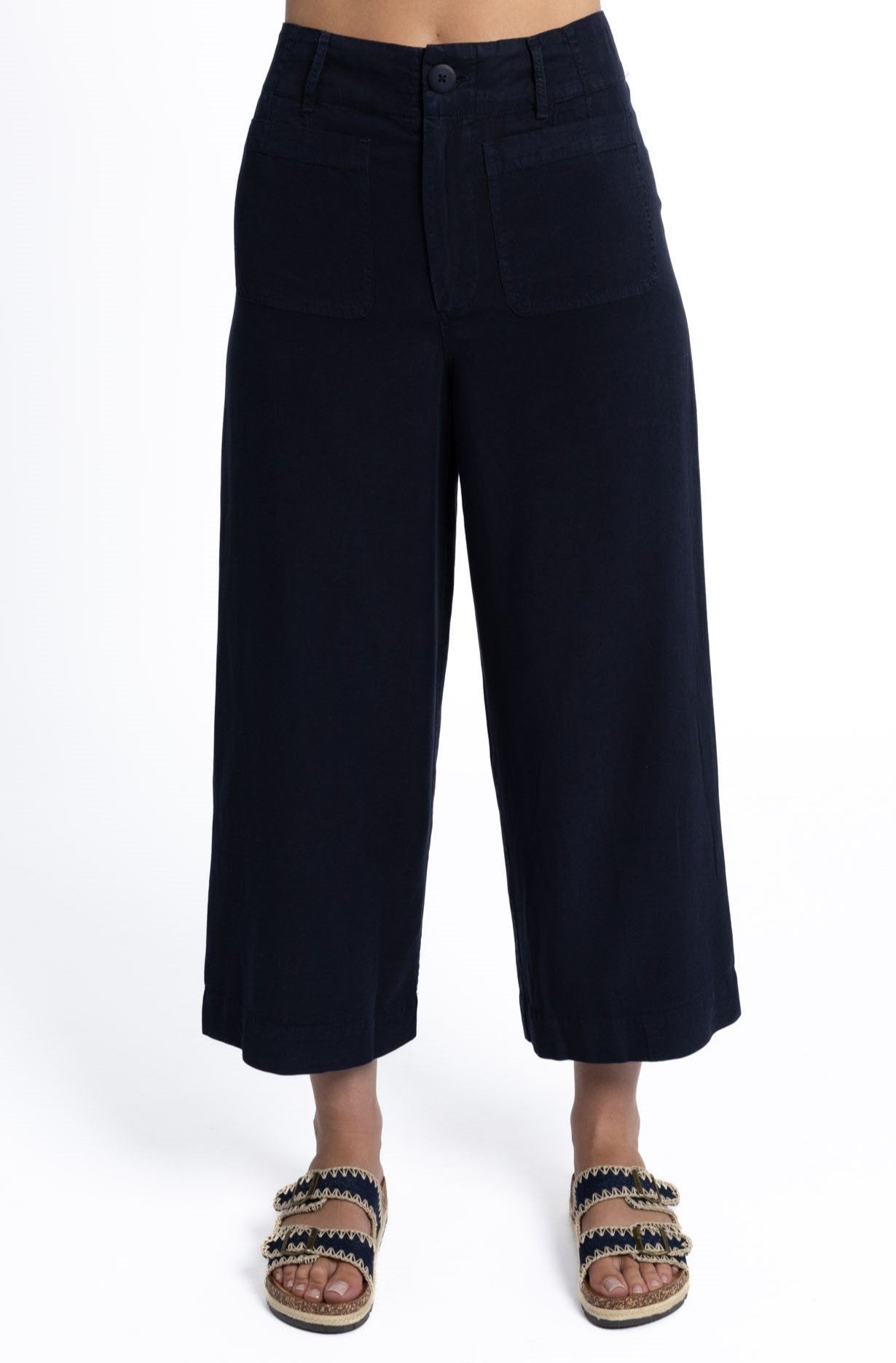 The Humidity Marley Pant in Navy is quite possibly the most comfortable pant you will own this summer. These high-waisted, wide-leg pants are designed for a relaxed yet polished fit, making them a perfect addition to your warm-weather wardrobe.