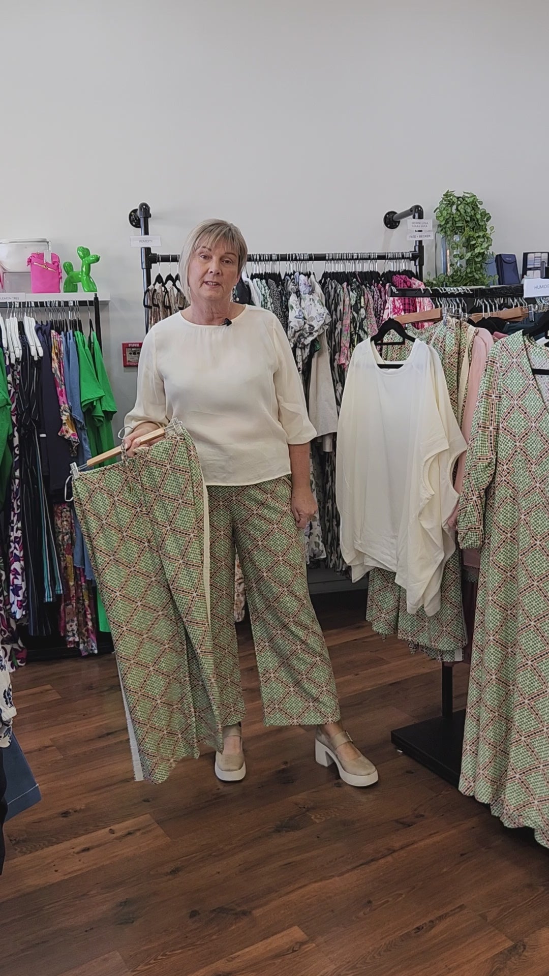In our store video Jan wears a size 12 in the pants (her usual size), she is 164cm tall. Jan wears the pants with the Ivy Blouse (also available at Spoilt).