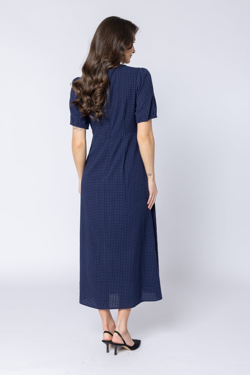 This beautiful maxi dress offers an easy-to-wear silhouette crafted from breathable cotton, making it the perfect piece for work, weekend outings, or casual events. The timeless micro-check pattern provides a chic alternative to solids.
