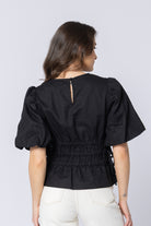 Make a statement with the dramatic and chic Leila + Luca Royal Top in classic black. This stylish blouse perfectly balances structure and femininity, making it an essential piece for year-round effortless dressing.
