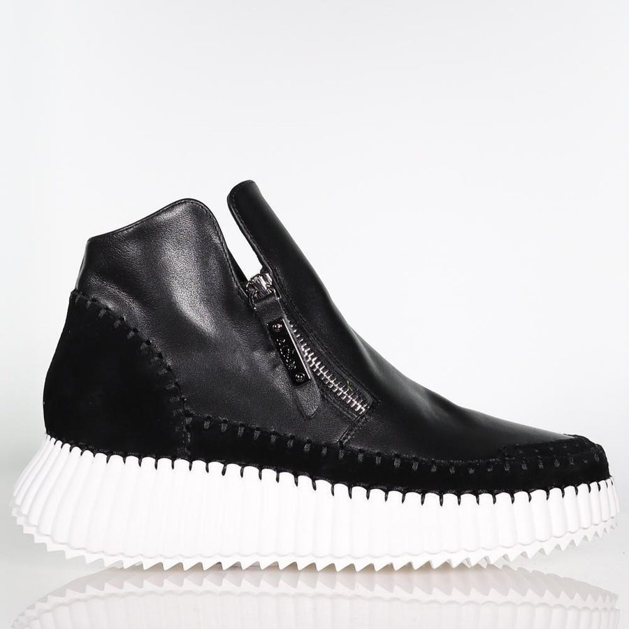 Introducing Wesley, the latest sensation in sneaker boots. Its fusion style seamlessly blends the Willott boot's double zip design with a lightweight, rugged platform sneaker sole. Available in black with suede and leather, they are detailed with intricate hand-stitched contrast lines, bringing a fresh new look to your collection. Versatile enough to pair with all your outfits, Wesley is the ultimate sneaker combo for the edgy woman on the move.