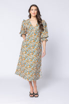 Step out in radiant, effortless style with the Seeking Lola Inviting Dress in the delightful Sunbeam print. This midi-length dress is designed to capture the cheerful essence of a bright day with its vibrant floral pattern and flattering, comfortable fit.