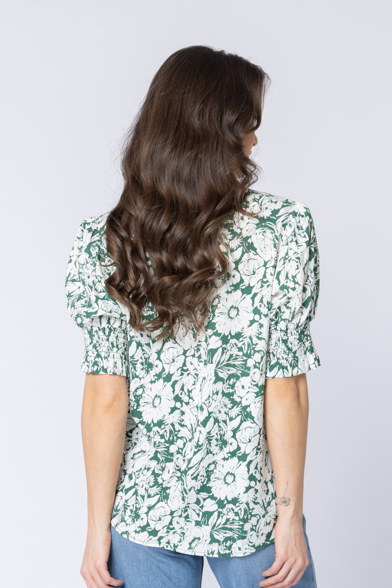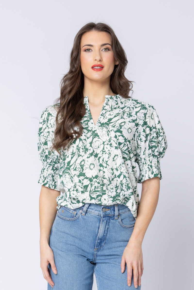 Voluminous Puff Sleeves: The short sleeves boast soft gathering that creates a beautiful puff silhouette, finished with comfortable elasticated shirring at the cuff for texture and structure.