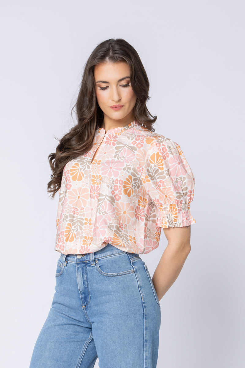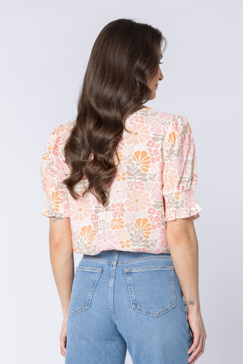 Step into spring with the delightful Seeking Lola Short Sleeve Movement Blouse in the enchanting Pink Petal print. This blouse features a charming retro-inspired floral pattern, boasting soft hues of blush pink, peach, warm beige, and subtle grey on a creamy background. It's an effortlessly sweet and stylish piece!