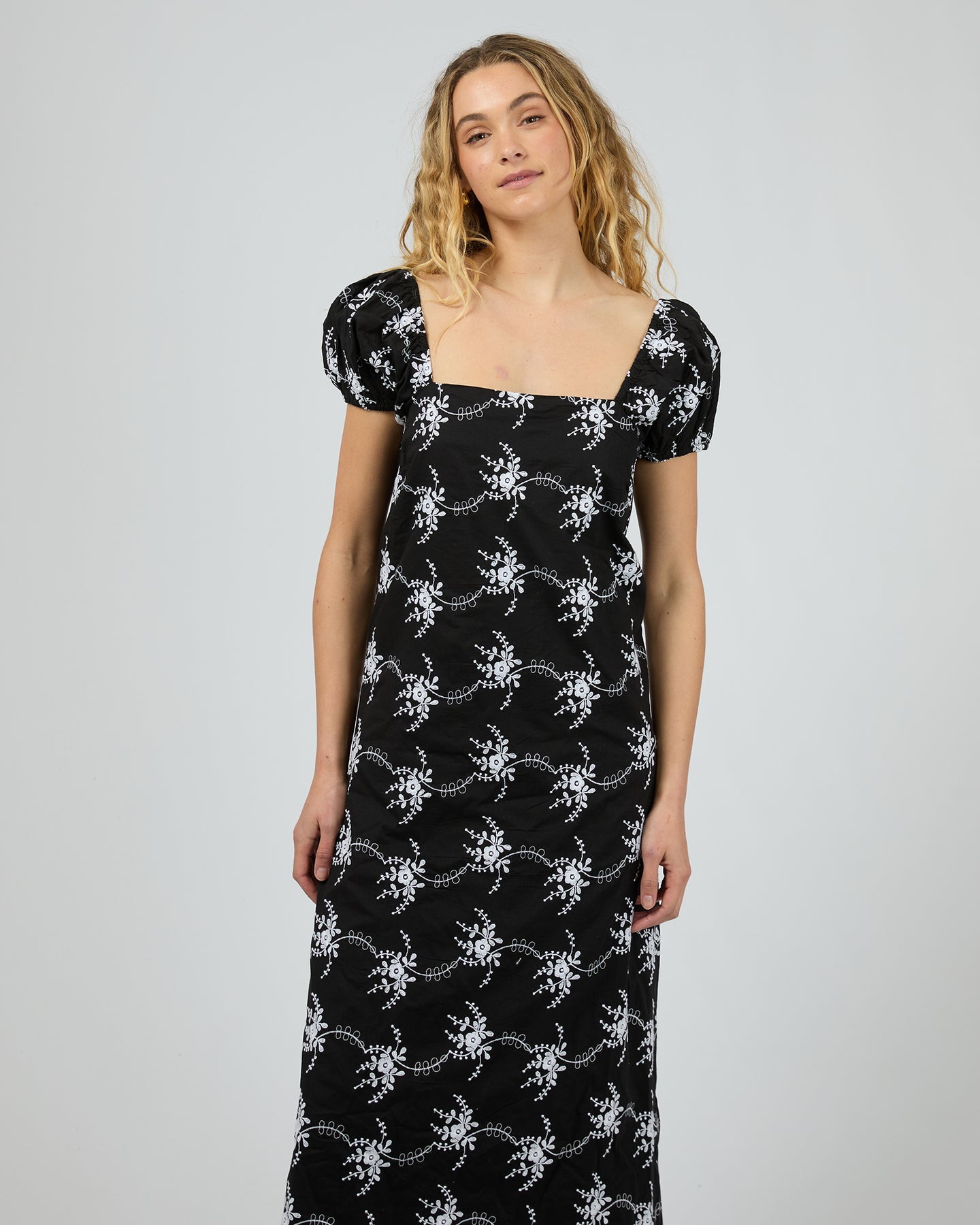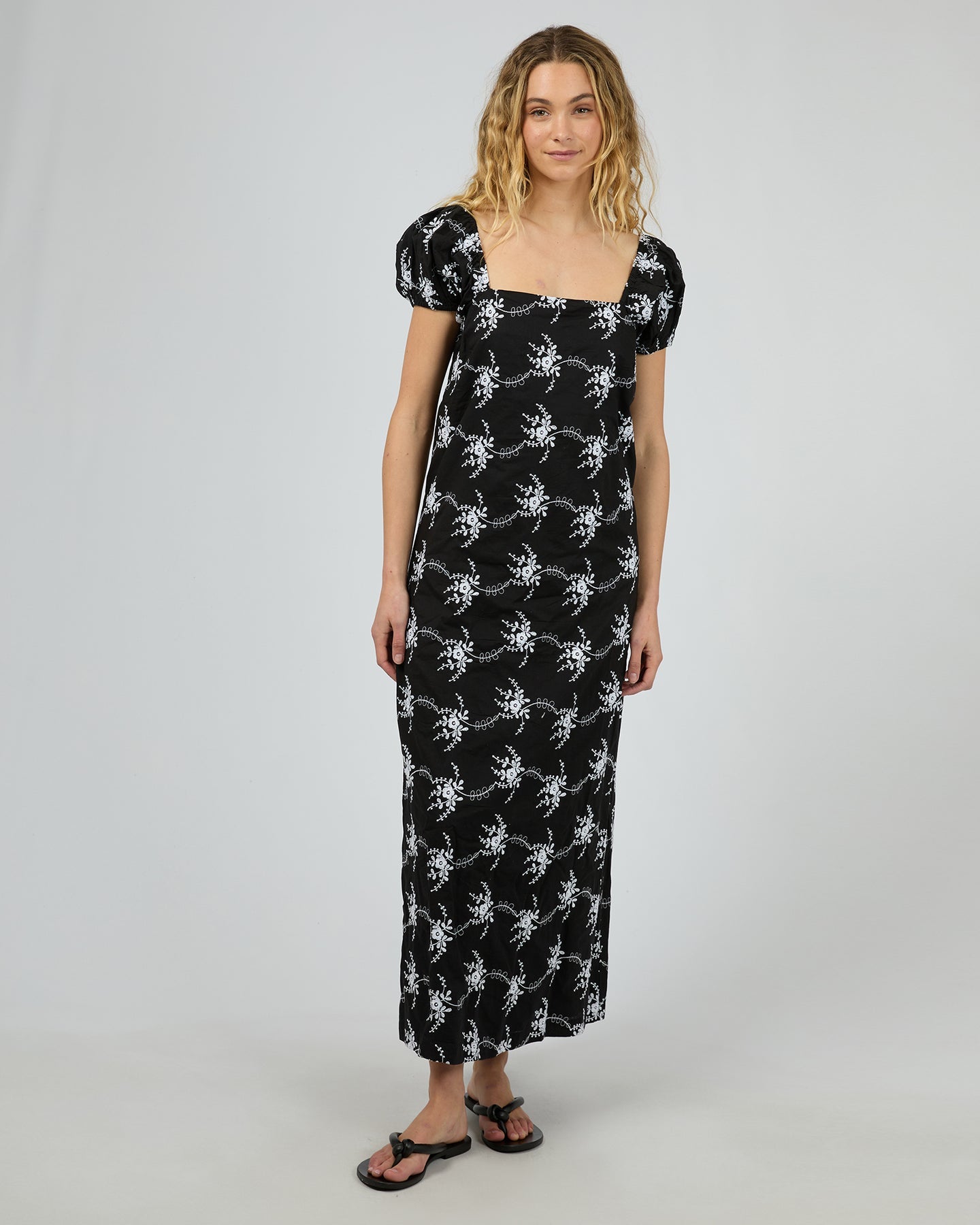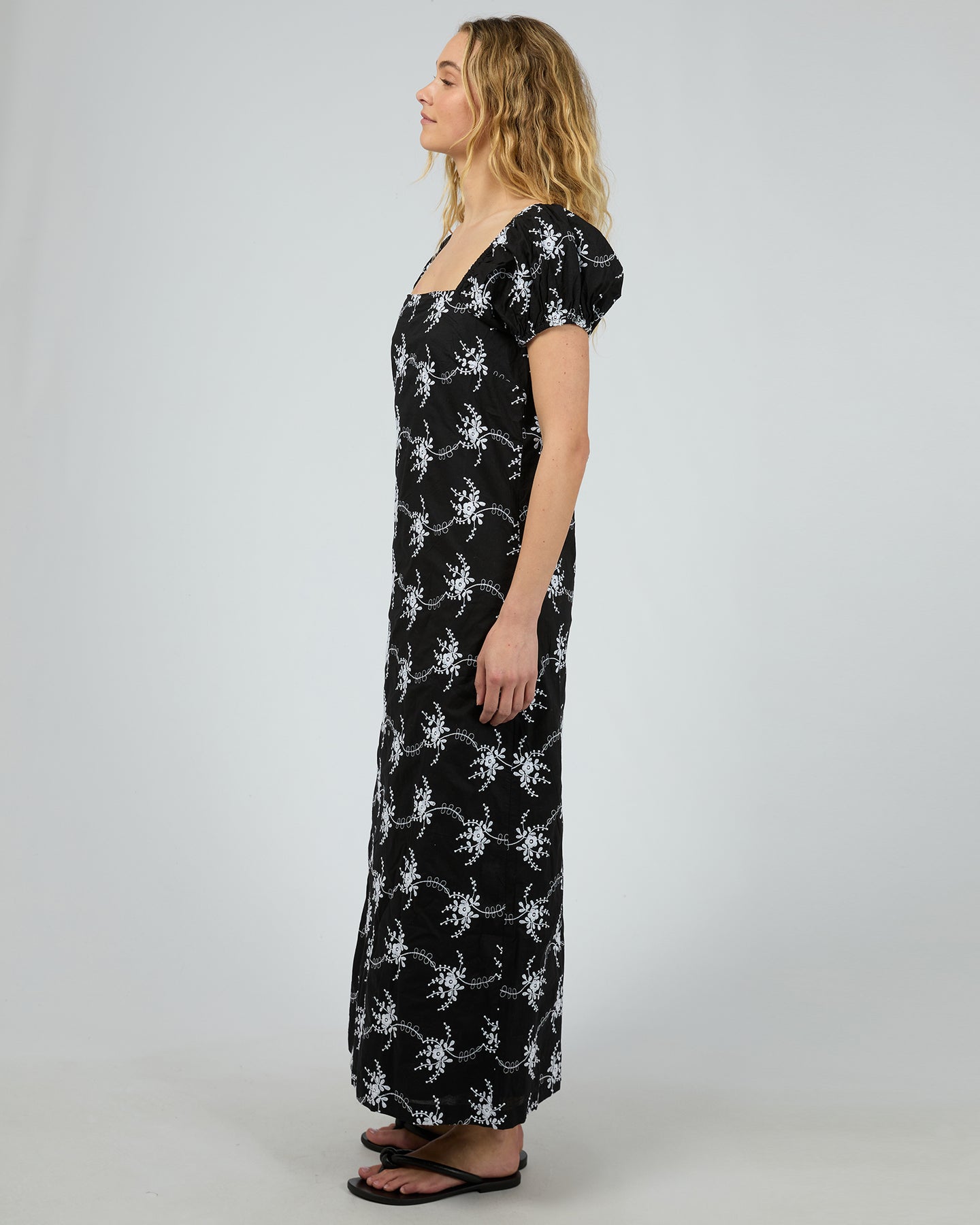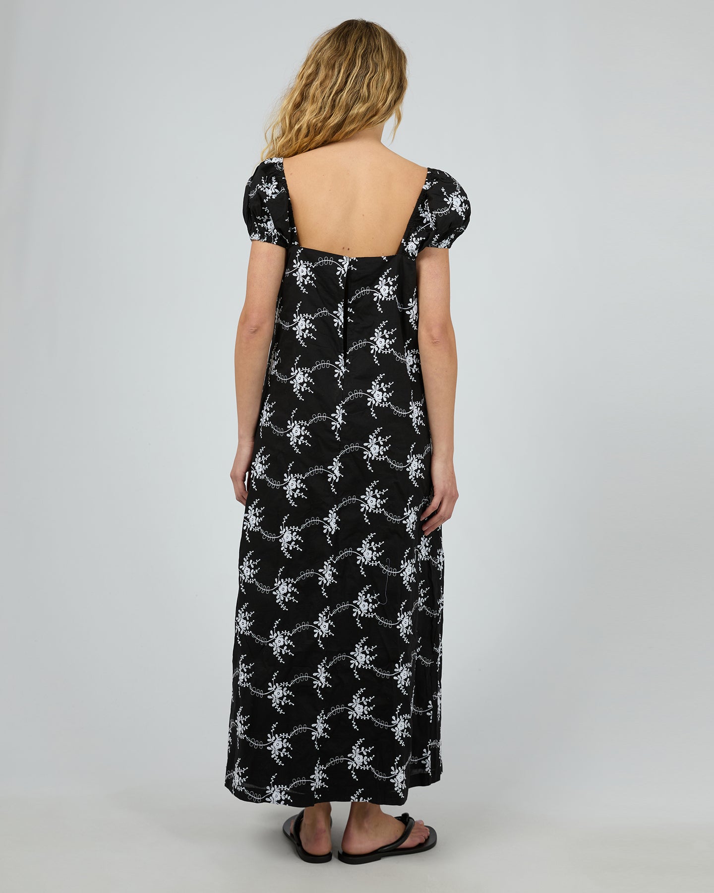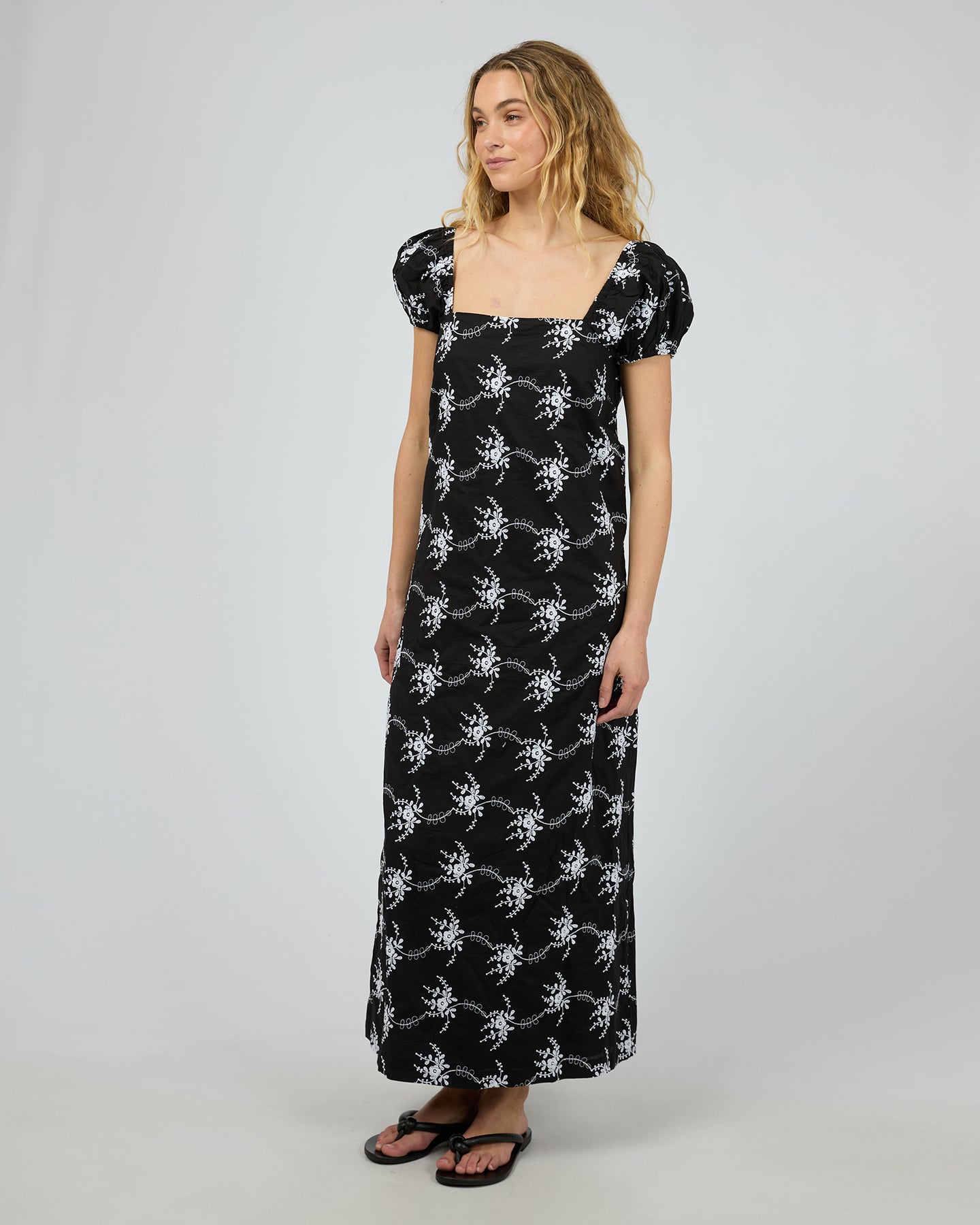Introducing the Tasman Maxi Dress. Featuring a contrast embroidery detail, centre back zip and elasticated cap sleeves, this style will guarantee style and comfort all season long.
