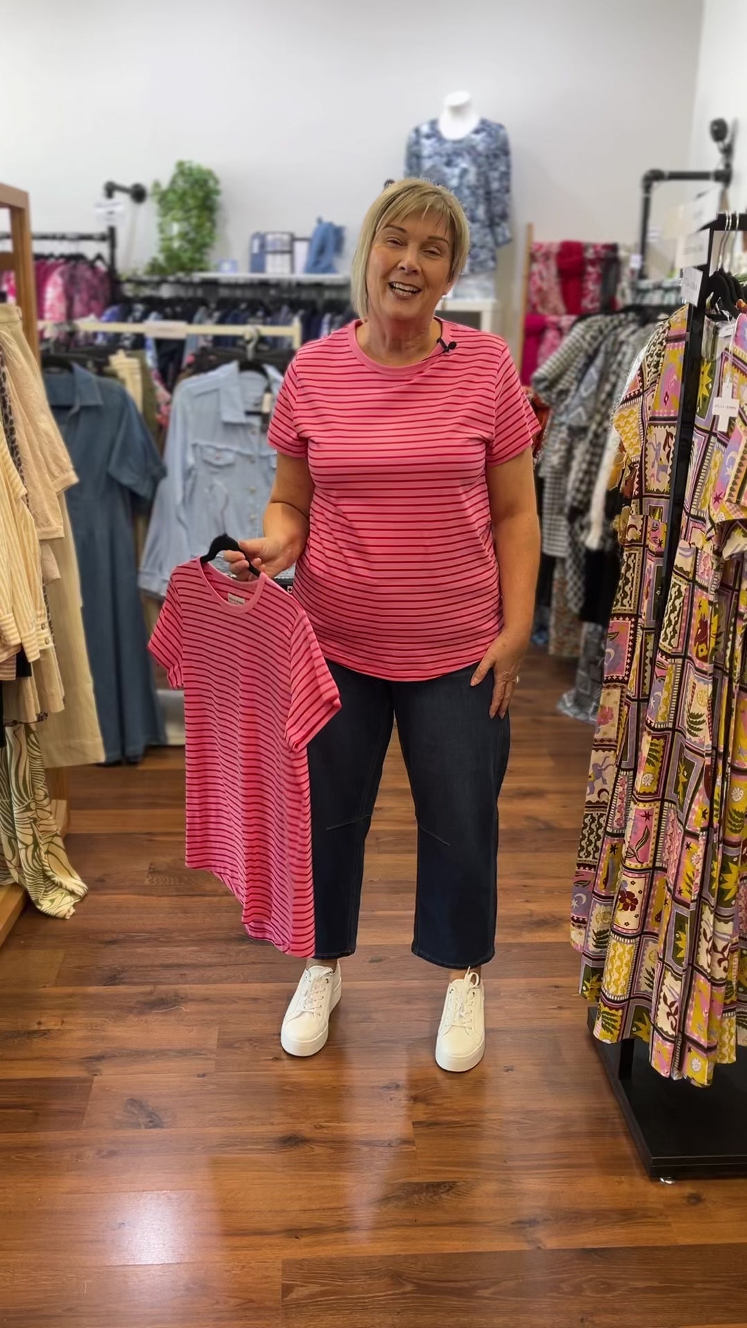 Meet your new wardrobe hero: the Stella + Gemma Classic Stripe Tee in a vibrant Pink with Red Stripe colourway. This timeless staple takes the beloved horizontal stripe and updates it with bright, cheerful colours that pop! Perfect for endless styling possibilities, this tee brings a touch of classic French-inspired chic to your everyday rotation.