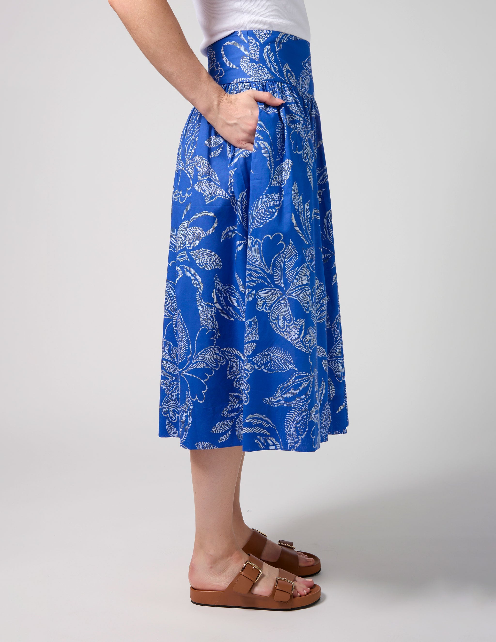 Capture the essence of a Mediterranean summer with the stunning Stella + Gemma Rhode Skirt in Corfu Cobalt! This midi-length skirt combines a vibrant blue base with a beautiful white botanical print for a fresh, statement look.