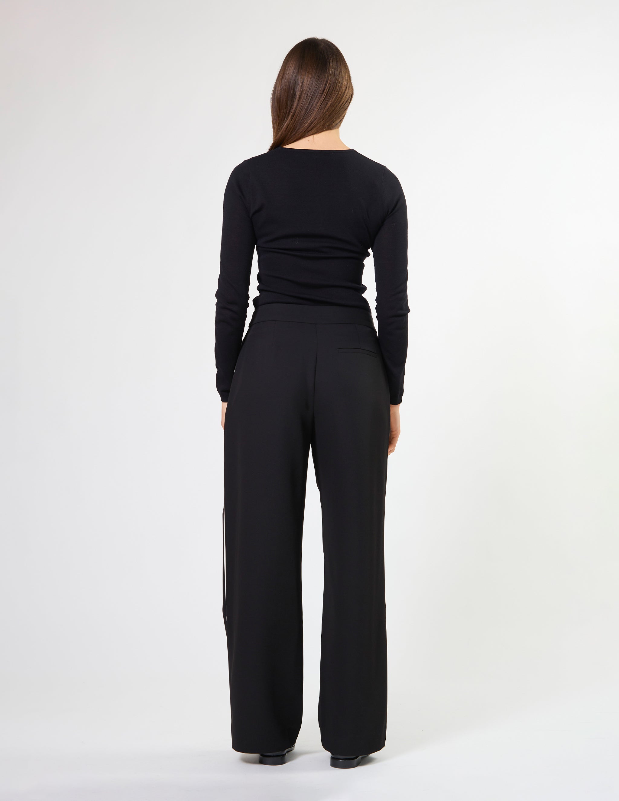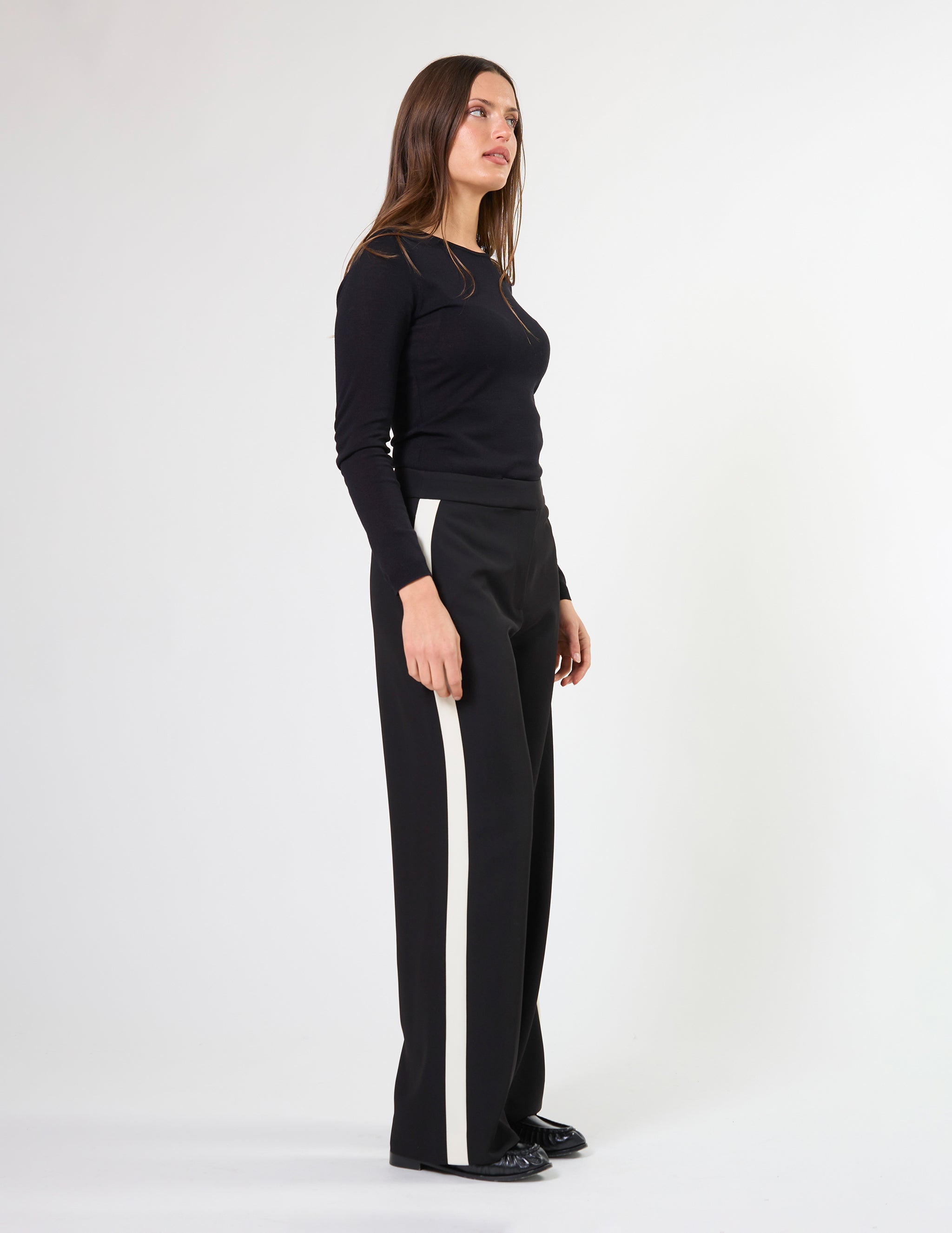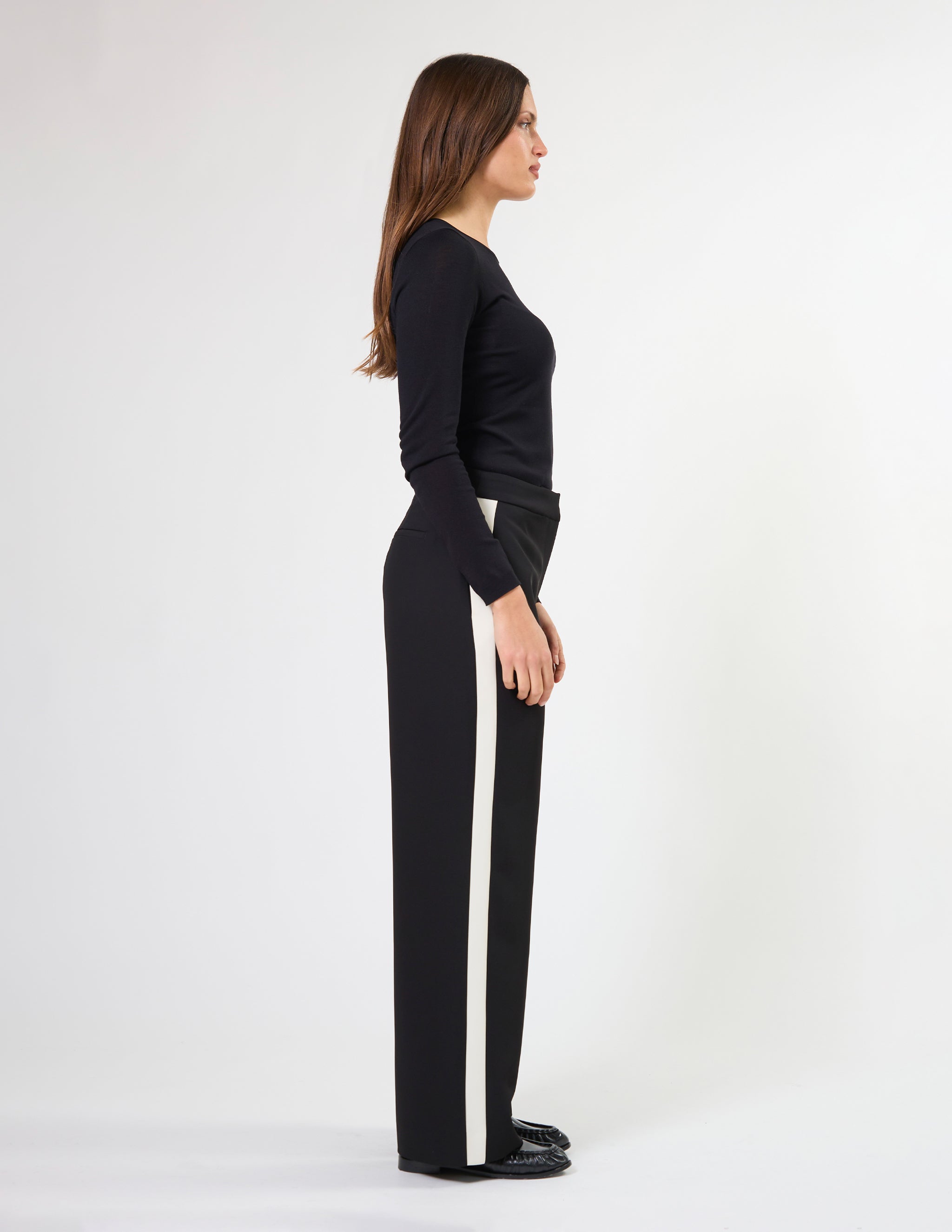 Moke Indiana Wide leg pants - Black with Satin Stripe