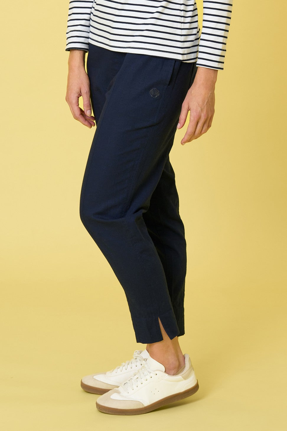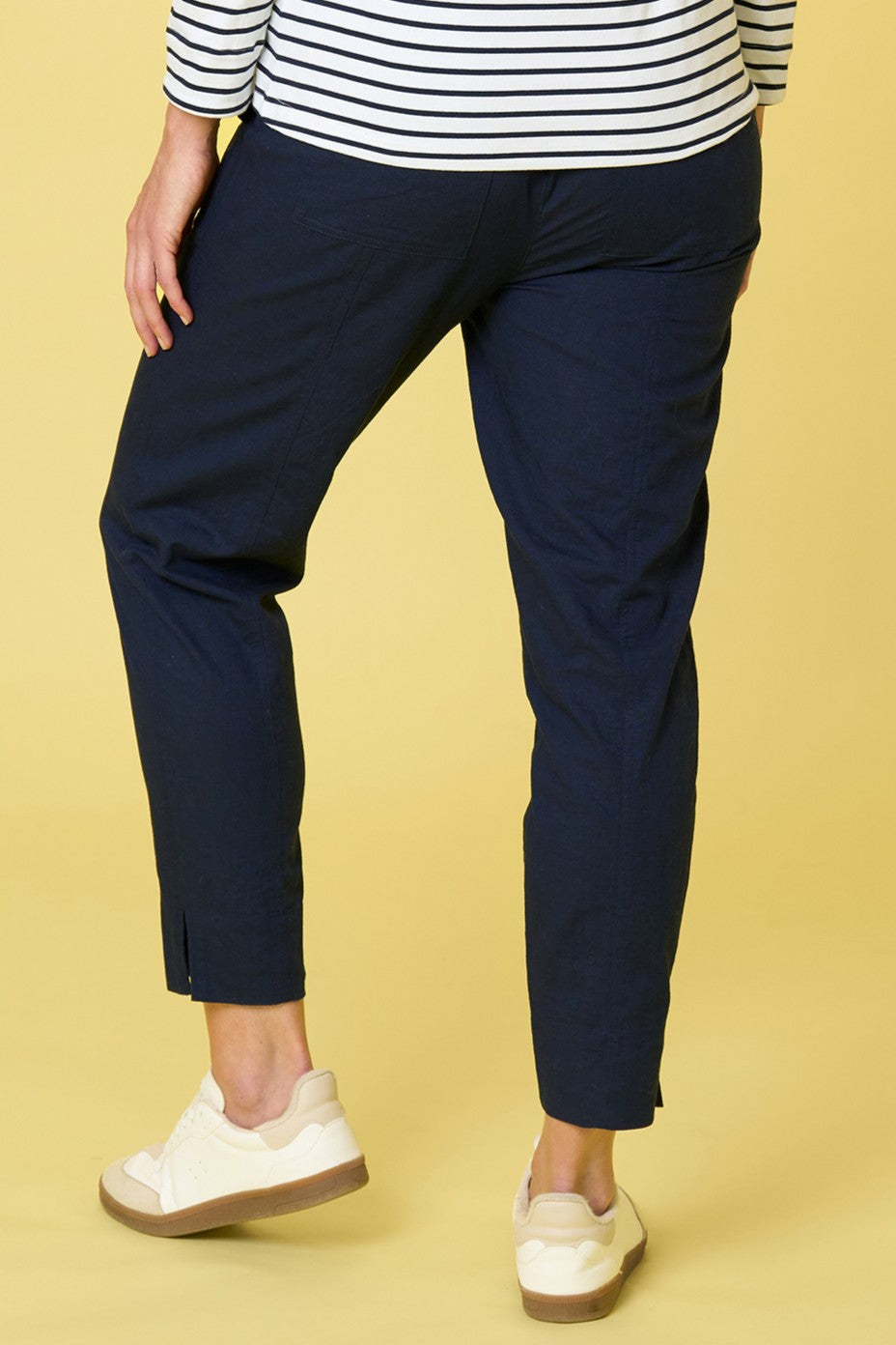 The Charlie Jane Devonport Pant in Navy is the ultimate blend of style and comfort for your everyday wardrobe. Crafted from a breathable and lightweight blend of 40% Linen and 60% Cotton, these pants are perfect for warmer weather and provide a relaxed yet polished feel.