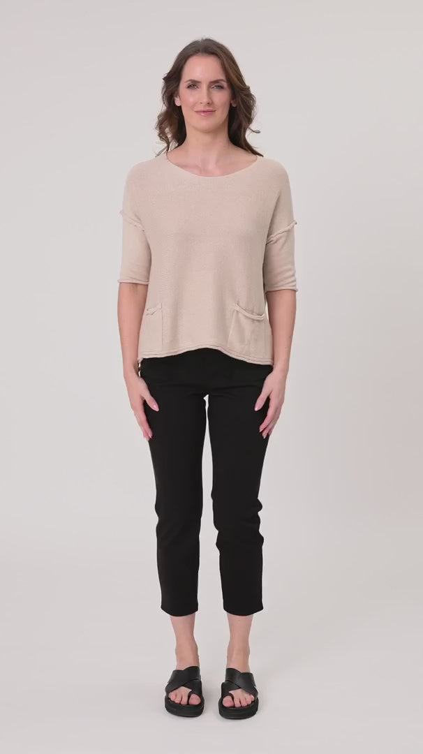 Crafted from a soft and stretchy blend of 40% Tencel, 27% Polyester, 18% Cotton, and 5% Elastane, the Gemma Pant offers a slim, tailored fit without compromising on comfort. The elasticated waistband with satin ties provides a custom fit and adds a touch of subtle elegance. With both side and back pockets, these pants are as practical as they are stylish, perfect for everyday wear.