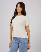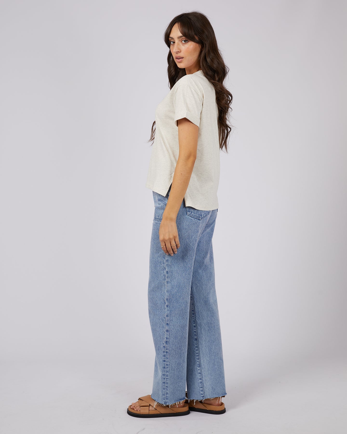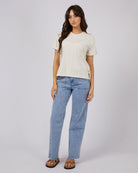 All About Eve Washed Tee features a garment wash with a branded chest embroidery. Styled back with denim jeans and sneakers for a chic weekend vibe.