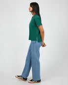 All About Eve Washed Tee features a garment wash with a branded chest embroidery. Styled back with denim jeans and sneakers for a chic weekend vibe.