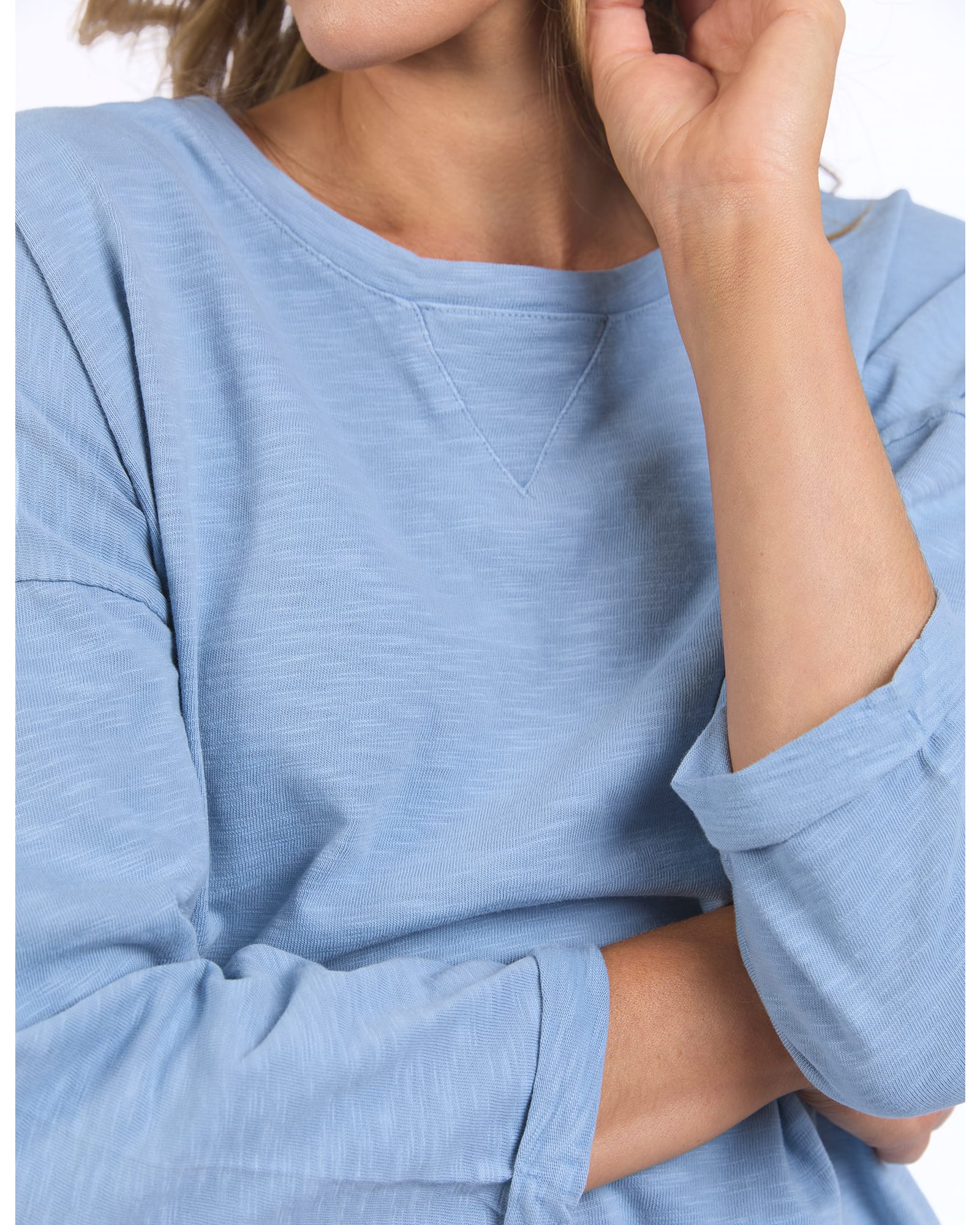 A Favourite For All Seasons. The 100% Cotton Slub Jersey Annie Tee Features ¾ Sleeves And A Scooped Back Hemline Making It Ideal For Layering. The Cuffs Have A Cute Roll And The Drop Shoulders Make It Comfort + For Everyday Wear.