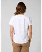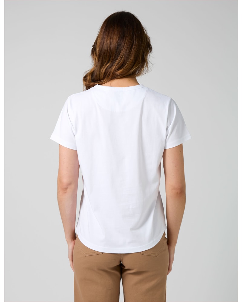 Crafted from 100% cotton, this tee is soft, breathable, and incredibly comfortable to wear. It's designed with a slim fit and a flattering scoop neck, while the hi-lo hemline provides a relaxed and easy feel. The Ace Tee is perfect for those who want to add a subtle statement to their outfit without compromising on comfort.
