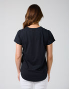 This classic style offers a comfortable relaxed fit through the body and a flattering crew neck. It's finished with a signature Stella + Gemma detail: a longer scoop hemline that dips slightly at the back, providing perfect coverage whether you wear it tucked or untucked.