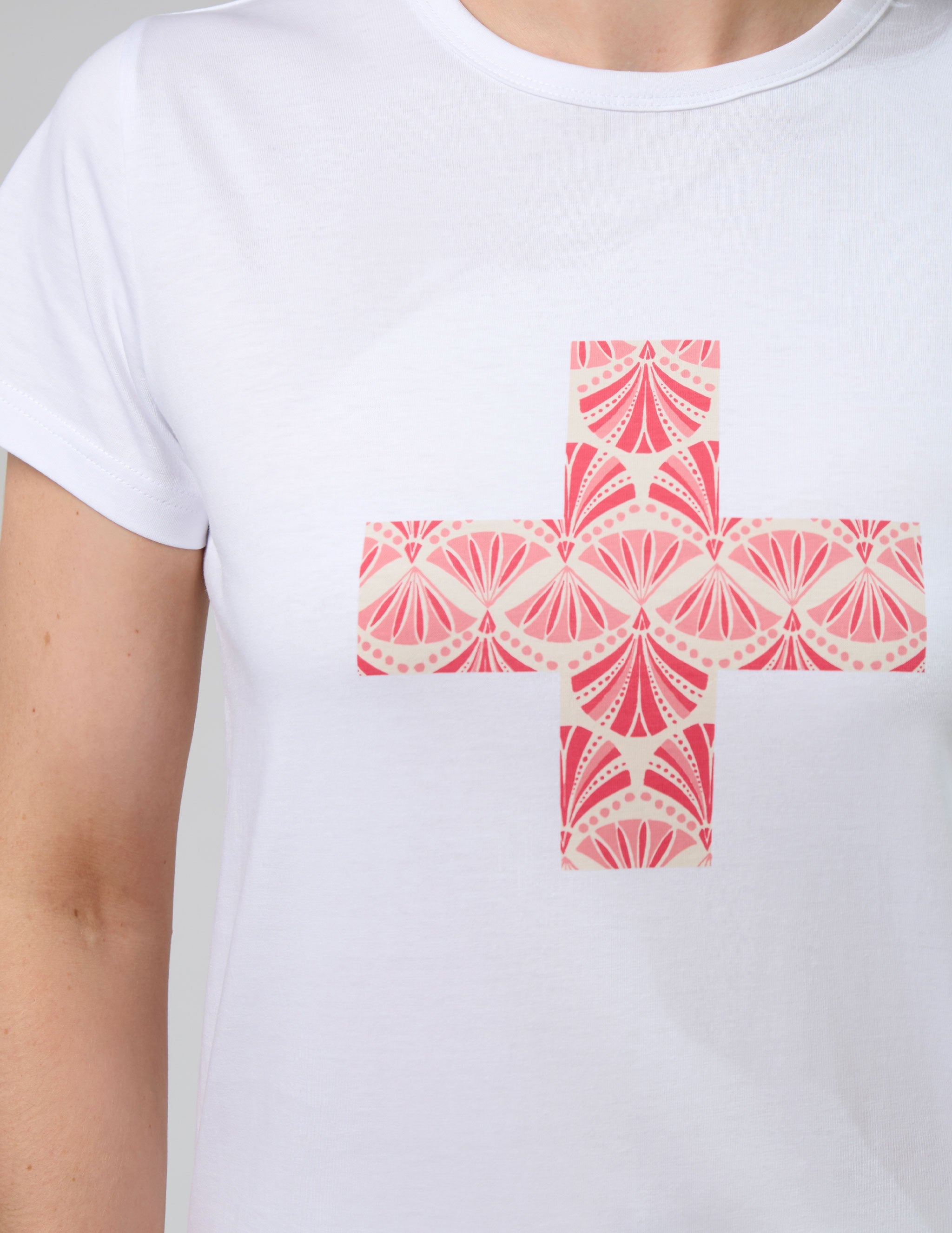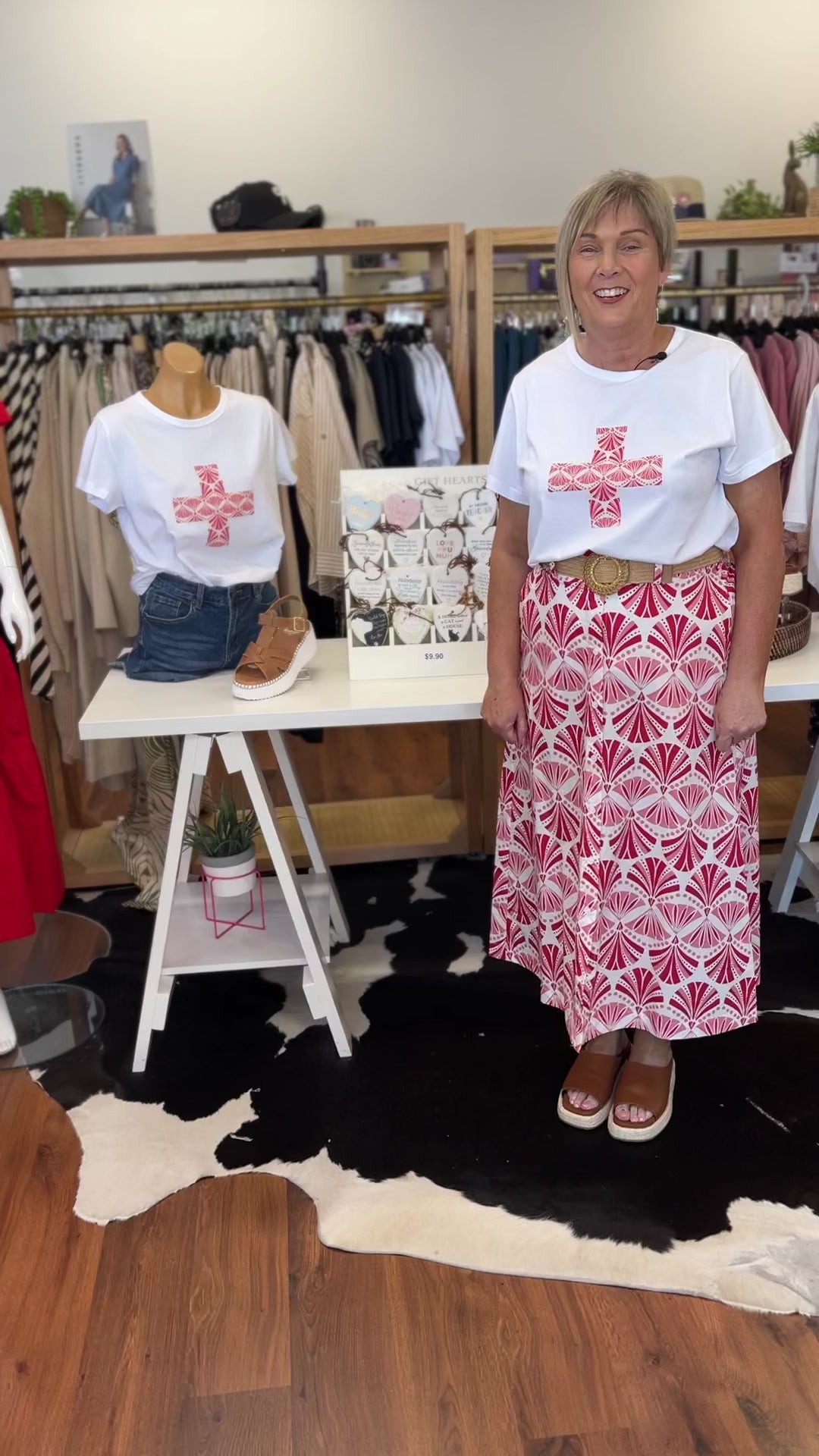 Perfect for pairing with jeans, shorts, or tucking into a midi skirt, this tee adds a delightful pop of pattern and colour to any outfit.