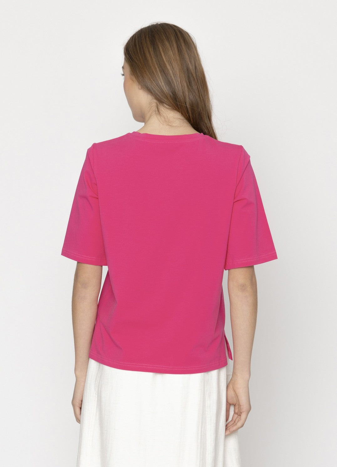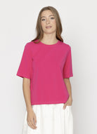 Add a pop of vibrant color to your wardrobe with the Two by Two Arrow Tee in a stunning hot pink. This tee is all about effortless style and comfort, designed to be the perfect foundation for any outfit.