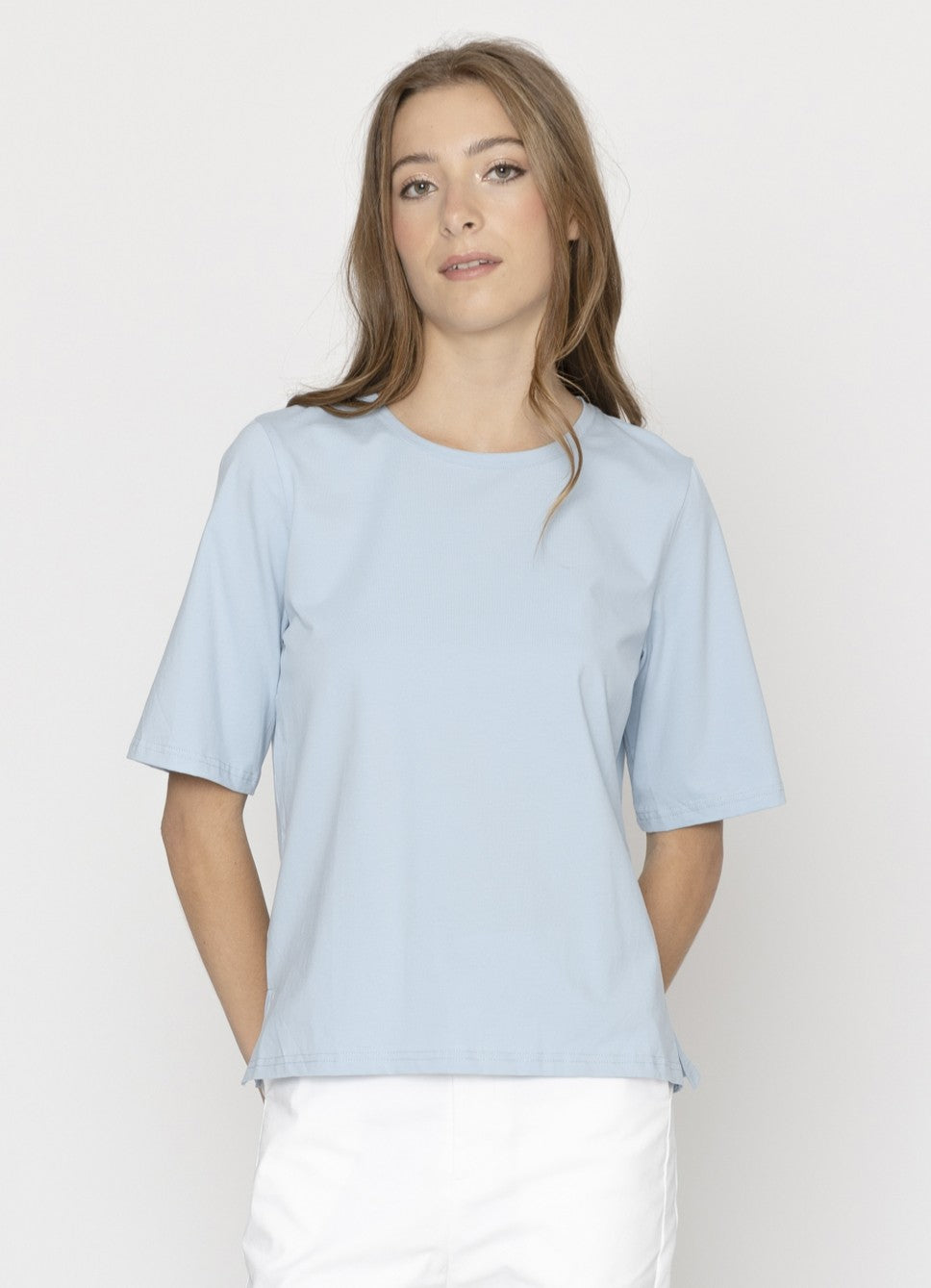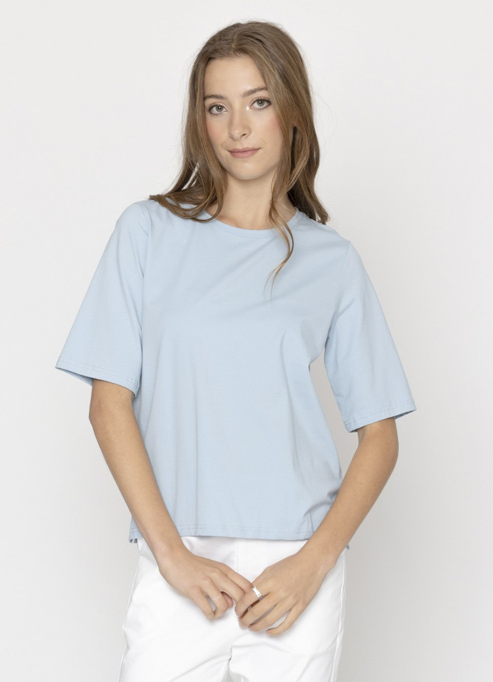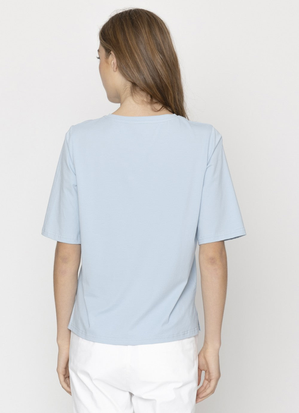Add a pop of vibrant color to your wardrobe with the Two by Two Arrow Tee in a sky. This tee is all about effortless style and comfort, designed to be the perfect foundation for any outfit.