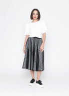The Cristina Skirt is designed with two layers of flowing mesh overlay. Black stitching on the crisp white skirt adds visual dimension. Perfect for adding a touch of high-end glamour to any outfit