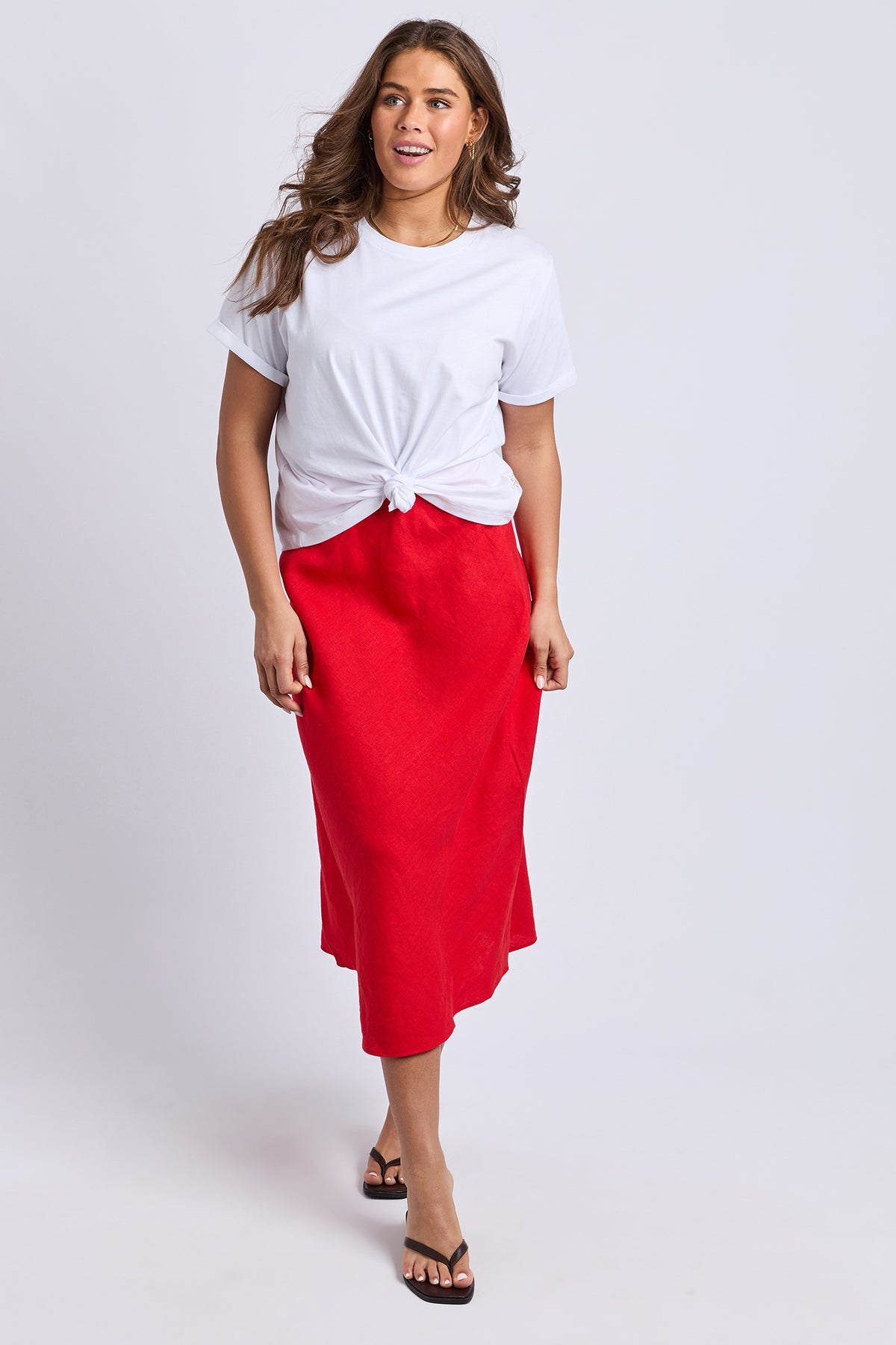 Designed for everyday wear, the eleni skirt boasts bias cut, elastic waist, and slightly flared hemline. Style it your way for an effortless look that works for any day of the week.
