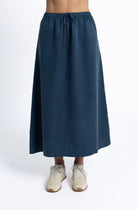 The Humidity Misi Skirt in Navy is a luxurious and versatile piece that will quickly become a favourite in your wardrobe. With its effortless A-line silhouette and beautiful drape, this midi skirt is designed for both comfort and class.