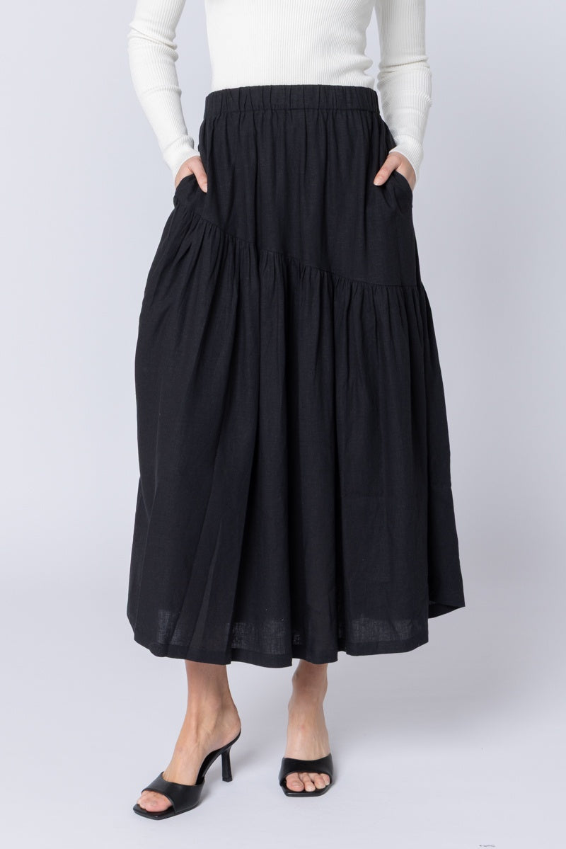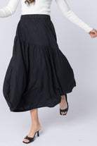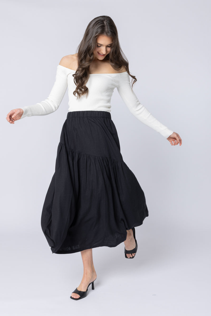 Unleash your inner goddess with the Devine Maxi Skirt from Seeking Lola. Designed for movement and effortless style, this voluminous black skirt is your new go-to piece for elevated comfort and chic versatility.