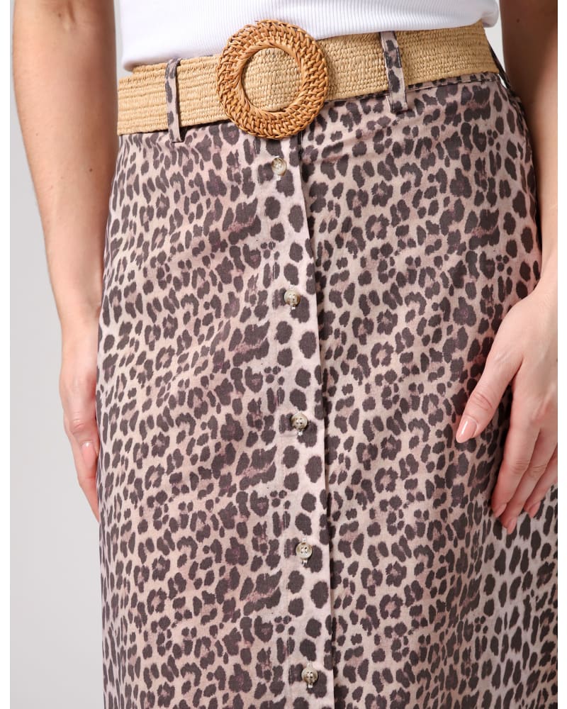 Adding to its chic appeal is a removable contrast raffia belt with a round buckle, allowing you to switch up your look. The skirt is finished with practical side angle pockets. Pair it with a simple top and sandals for an effortless, chic look.