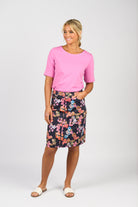 Vassalli Printed Lightweight Skirt with Centre Back Vent - Willa