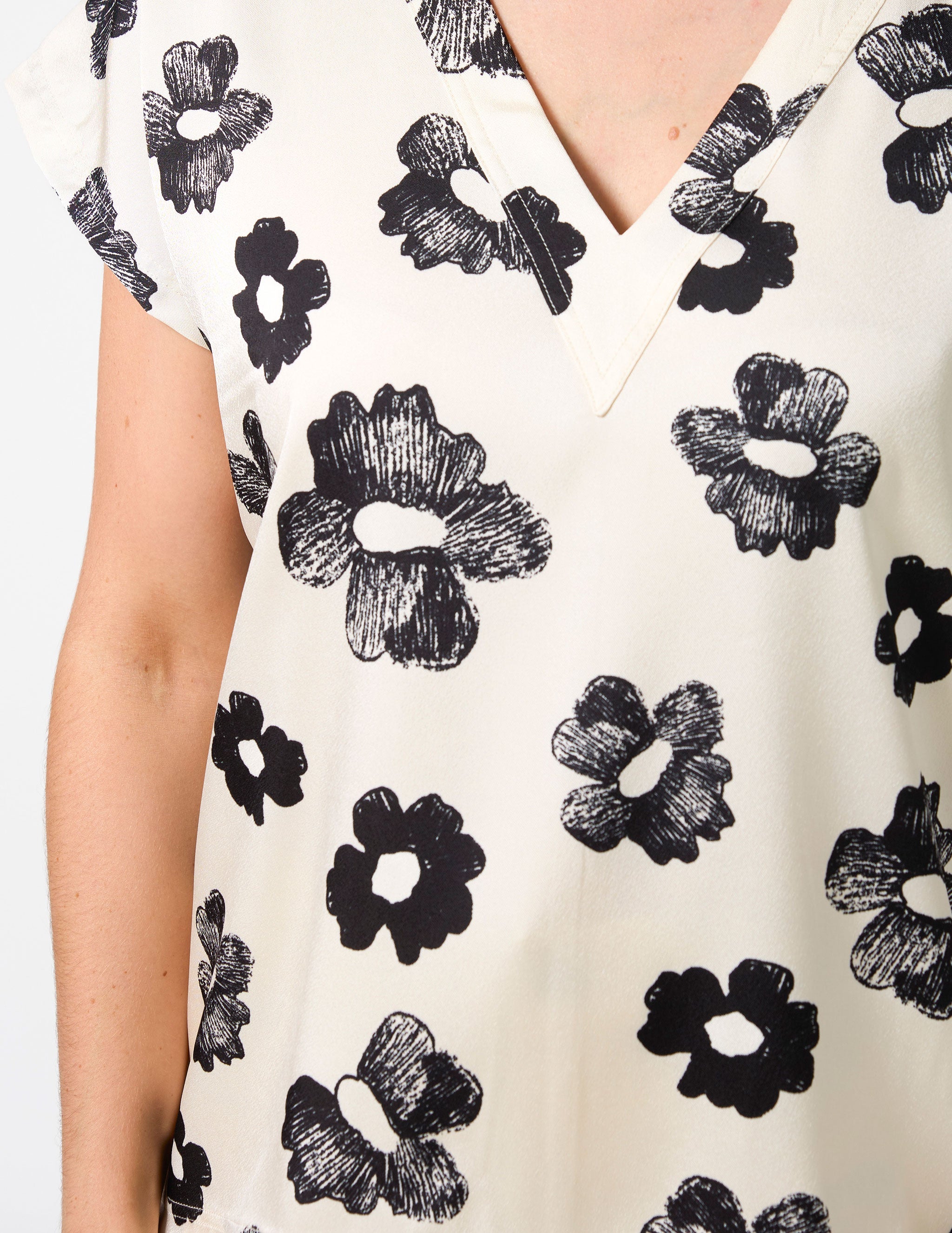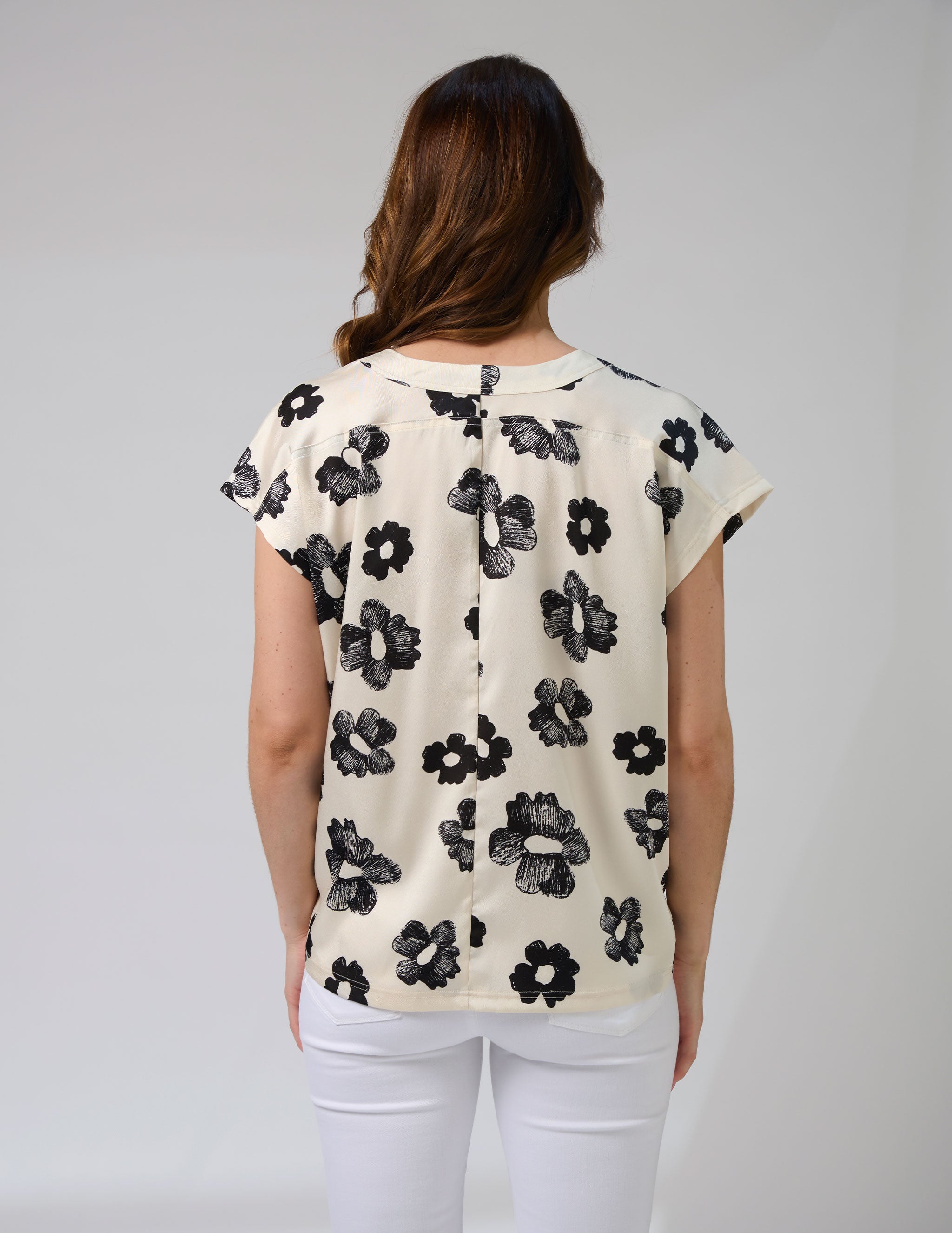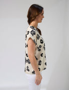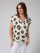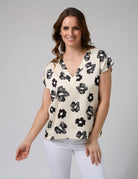 Crafted from 100% polyester, the Stella + Gemma Marta Blouse in Day Blooms is a stylish and versatile addition to your wardrobe. This v-neck blouse features a self-fabric neckband and a centre-back panel seam for a touch of refined detail. The beautiful "Day Blooms" print in black on an off-white background adds a fresh and modern floral touch to your look. Perfect for both casual and dressier occasions, this top pairs effortlessly with your favourite jeans or tailored trousers.
