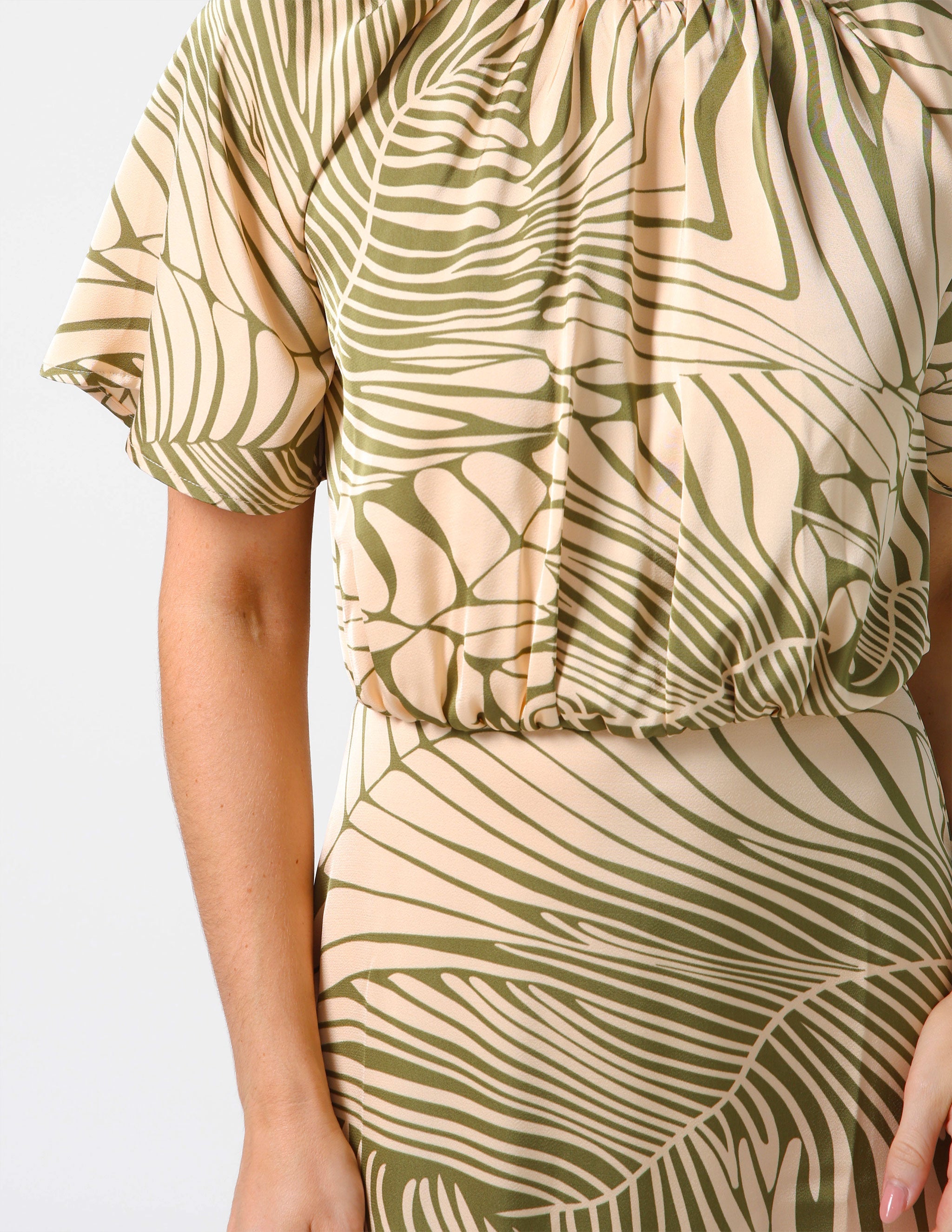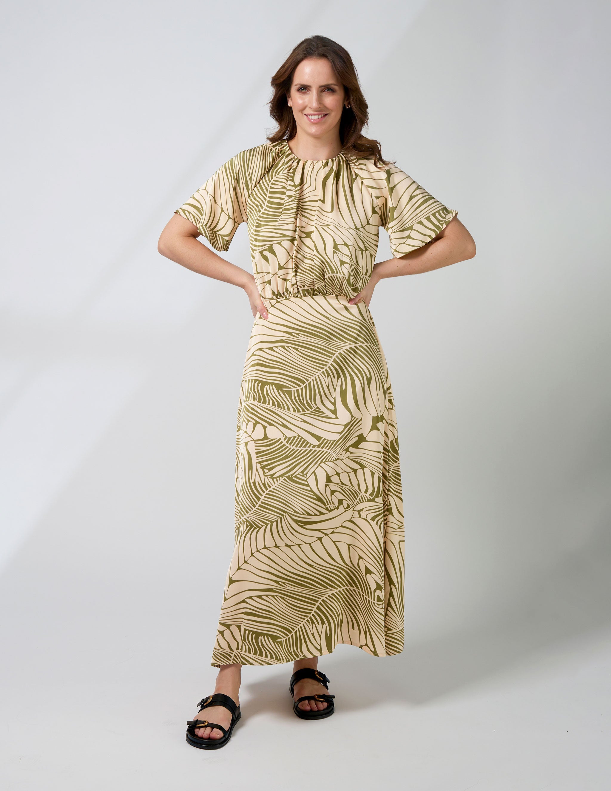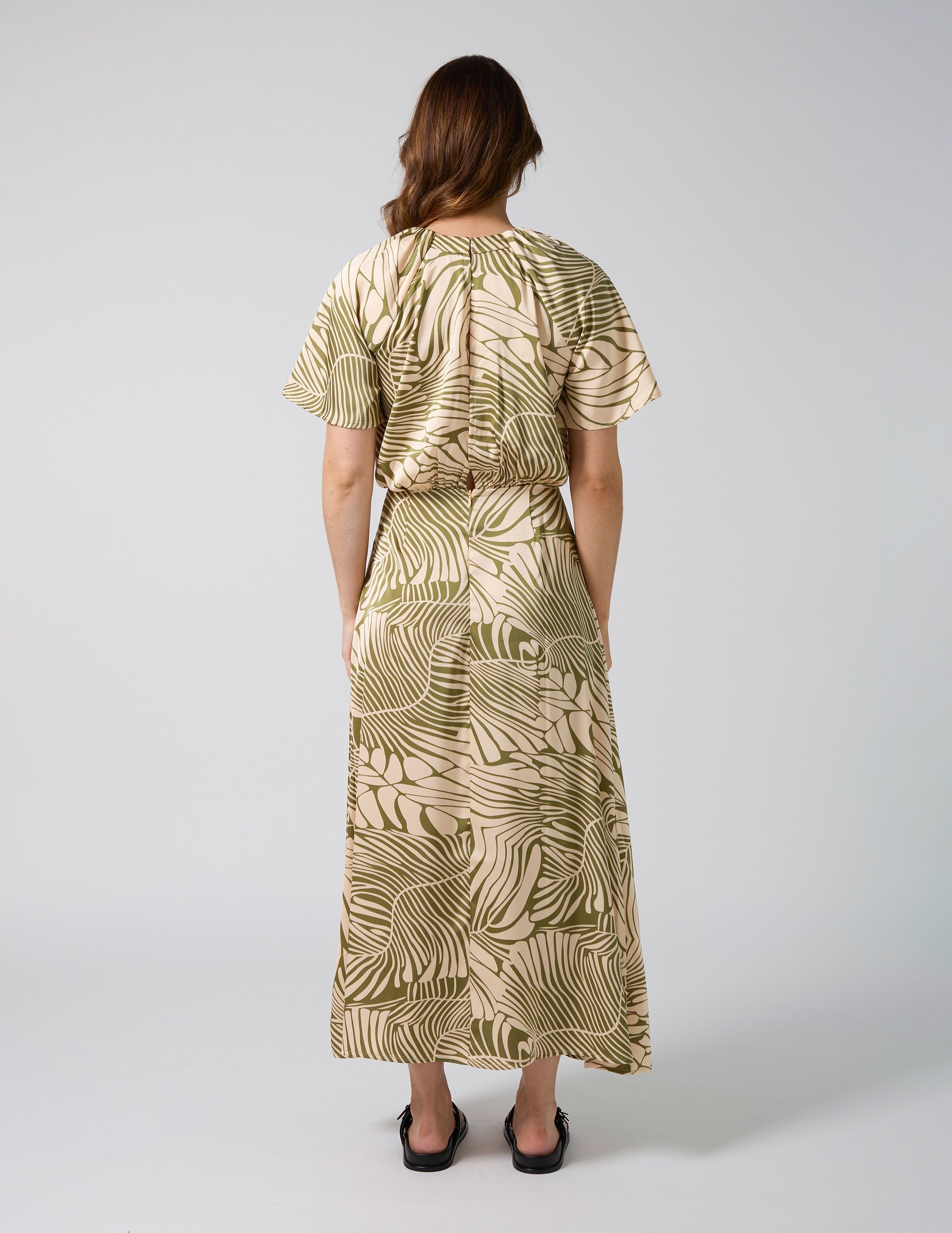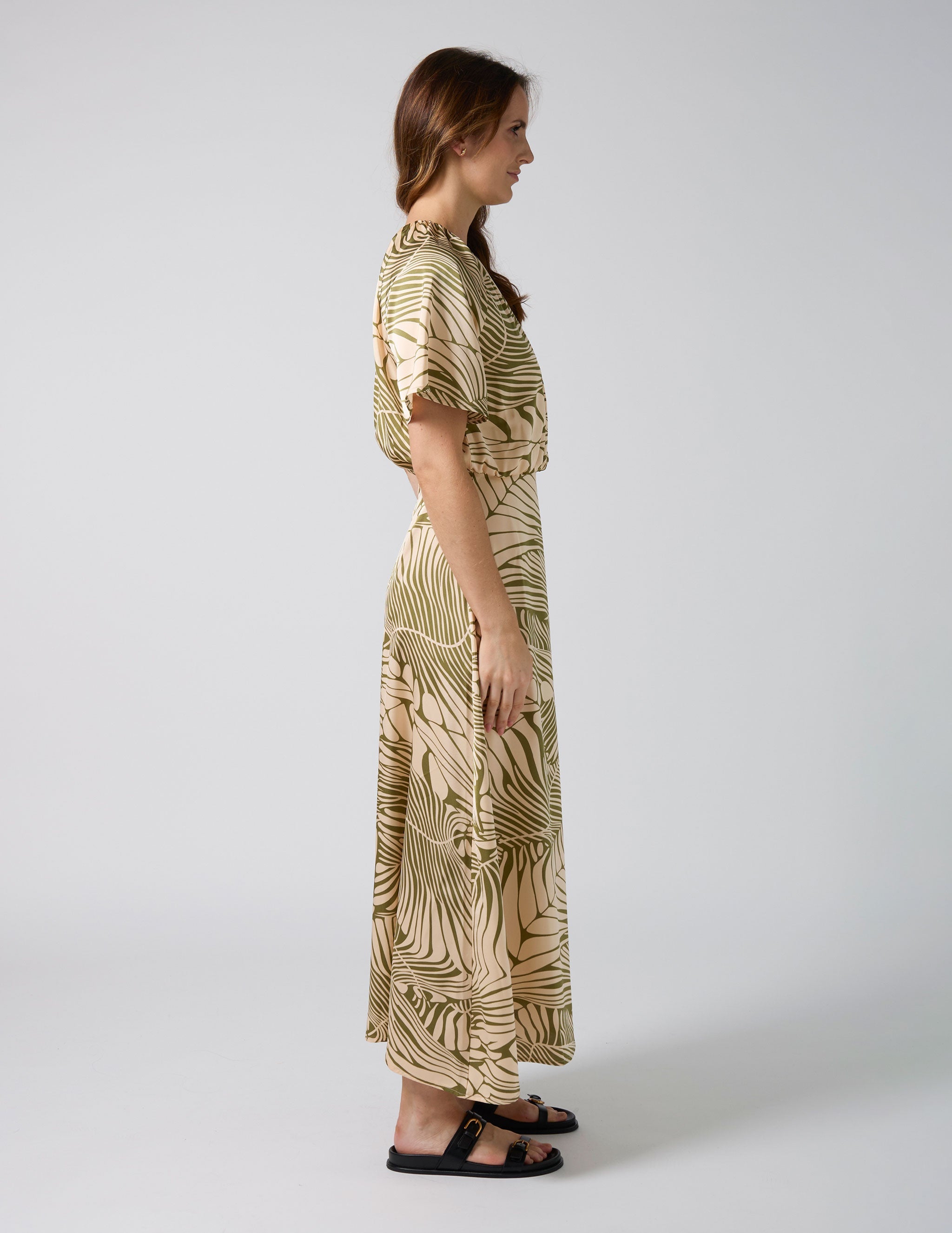 Embrace effortless style with the Stella + Gemma Matteo Dress in Monte Verde. This stunning maxi dress features a unique botanical print in a beautiful olive green and beige colourway, perfect for making a statement.
