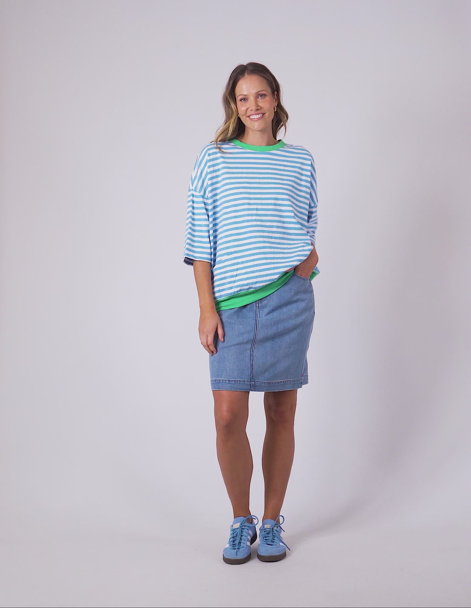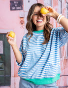 Elm Mazie Stripe Ringer Sweat - Azure & White Stripe /Gumdrop Bands