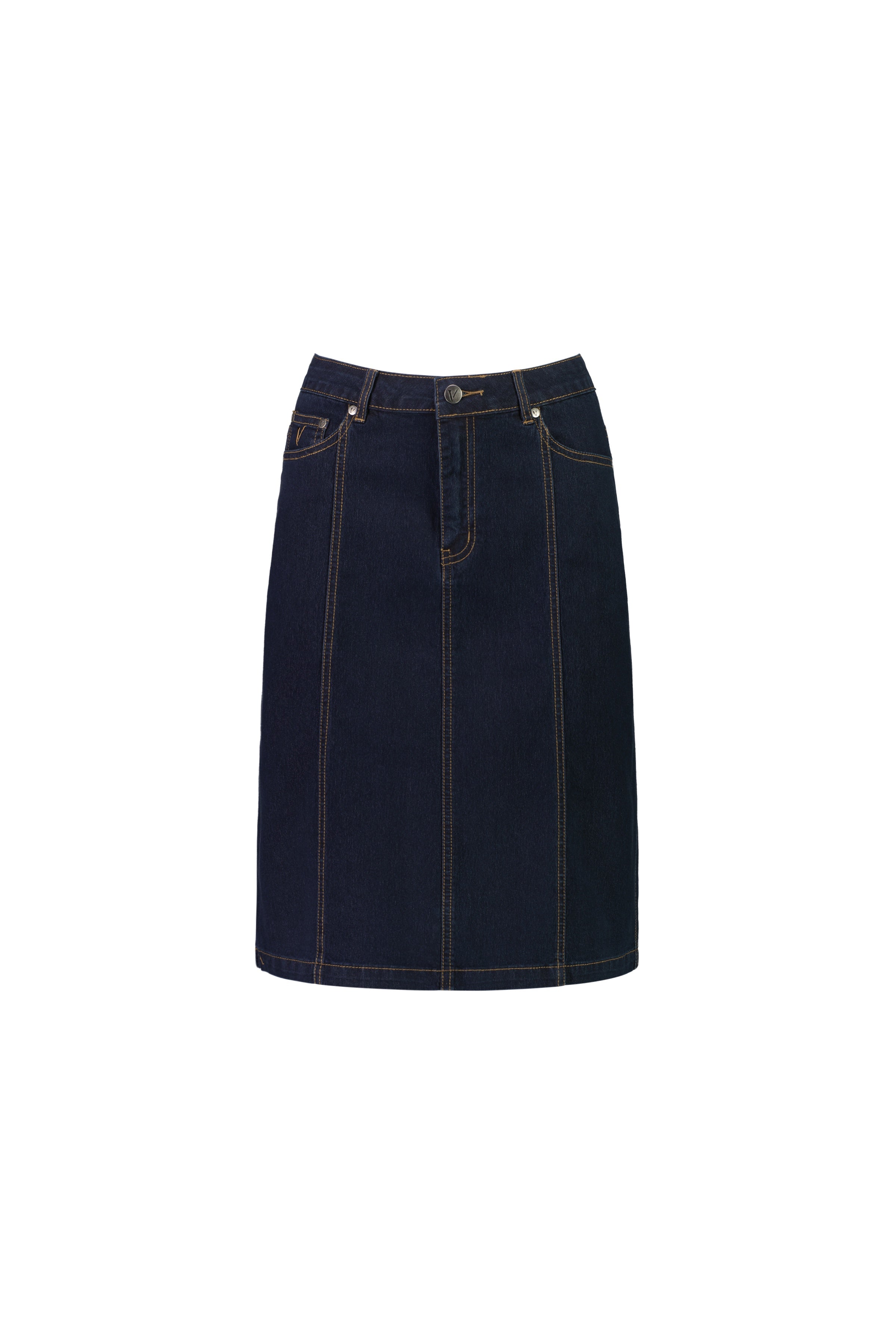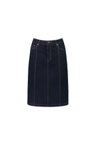 A classic denim skirt made from stretch denim for a comfortable fit. Designed with feature contrast stitch seams for a subtle, structured look.