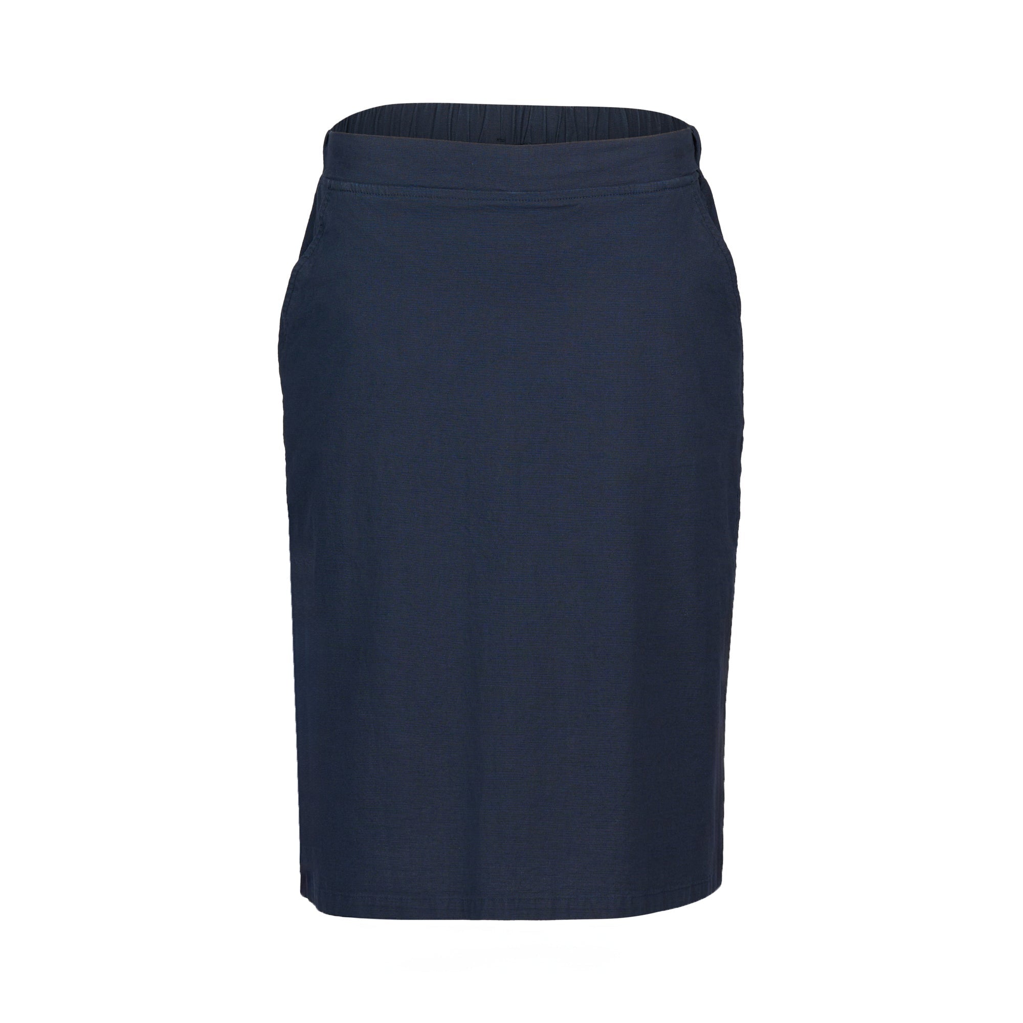Made from a cotton-viscose blend with a linen look, this pull-on skirt offers lightweight breathability and stretch. It features an elastic waistband with a flat front and practical front angle pockets.