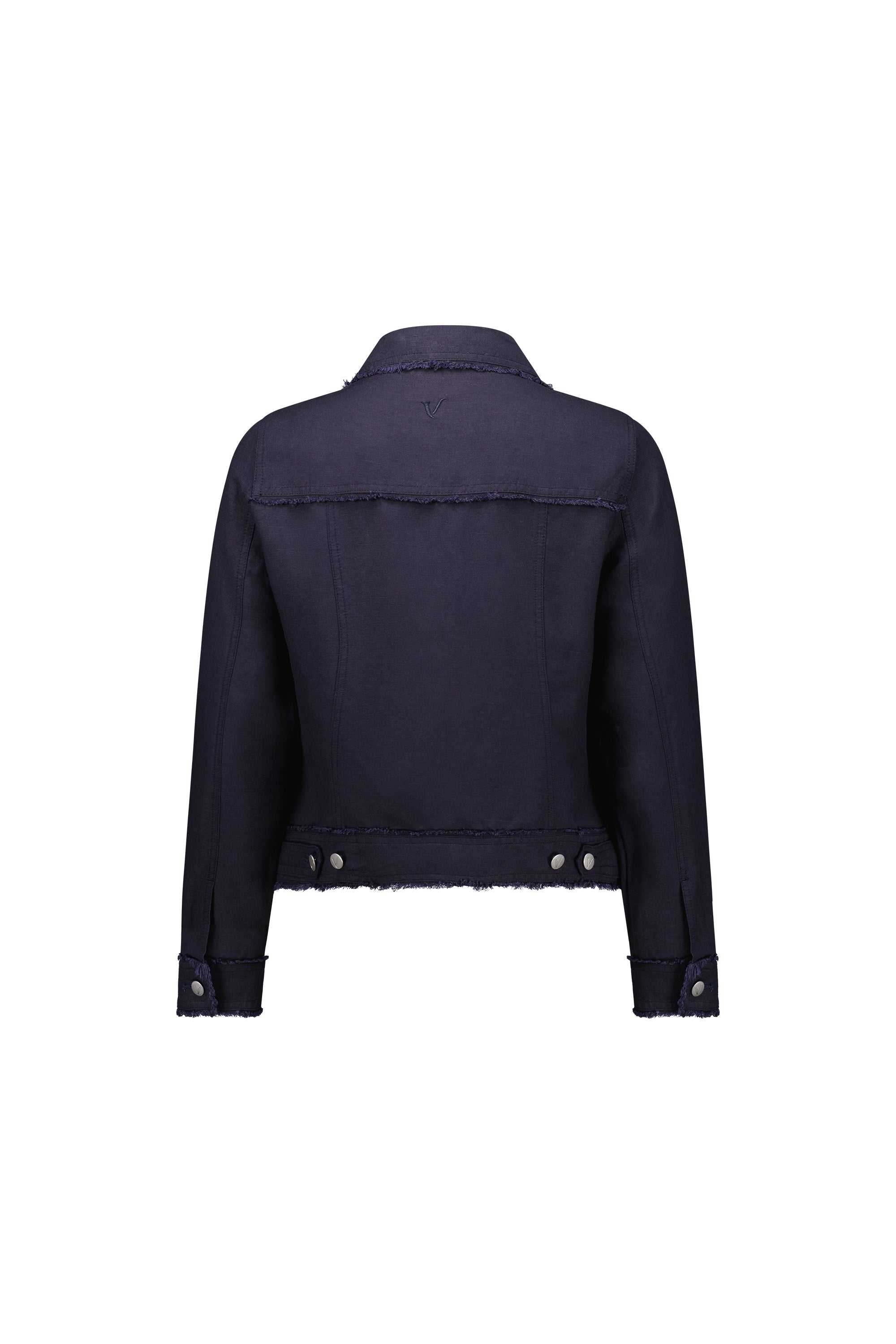 Vassalli Linen Jacket with Frayed Seams - Navy