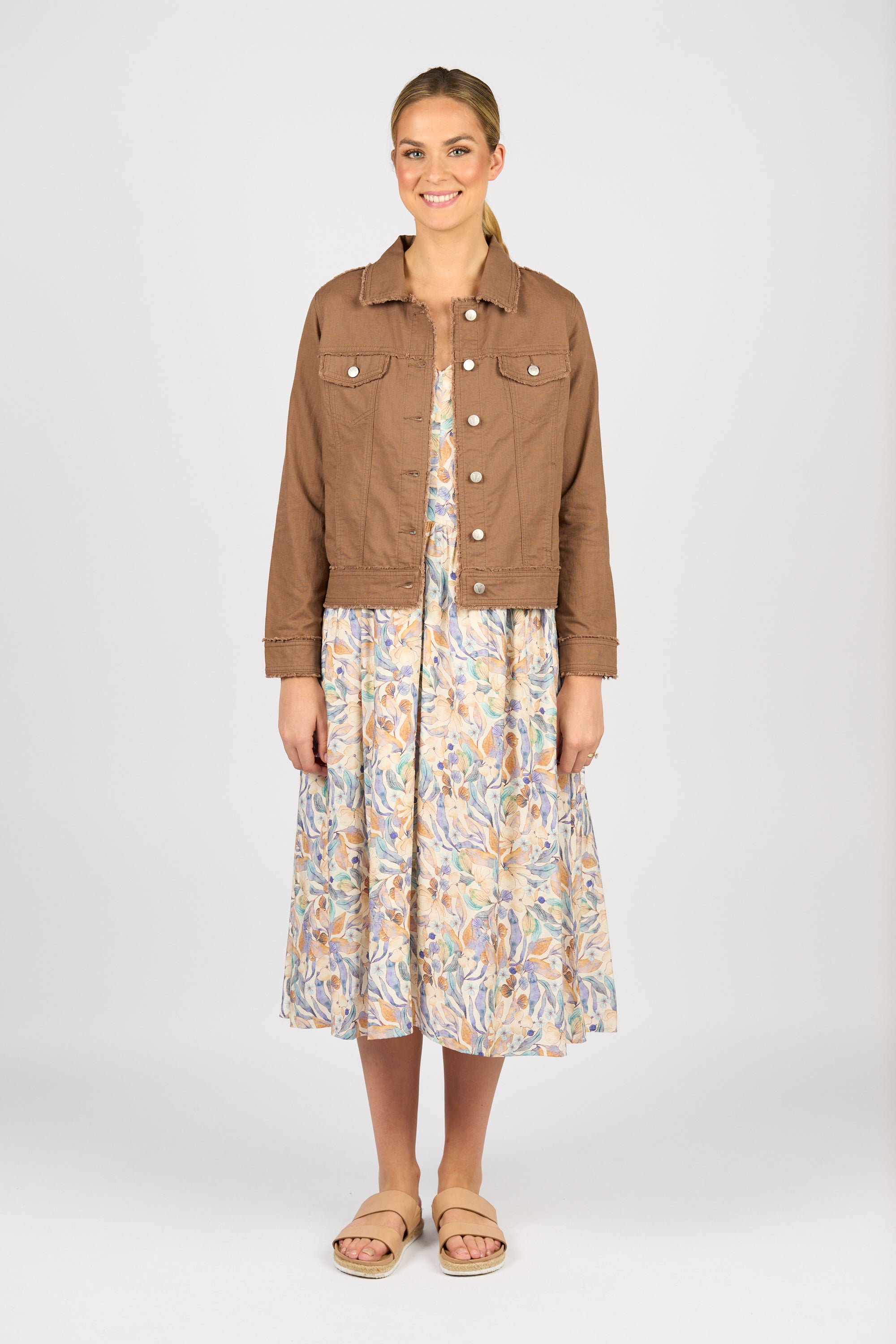 Vassalli Linen Jacket with Frayed Seams - Pecan