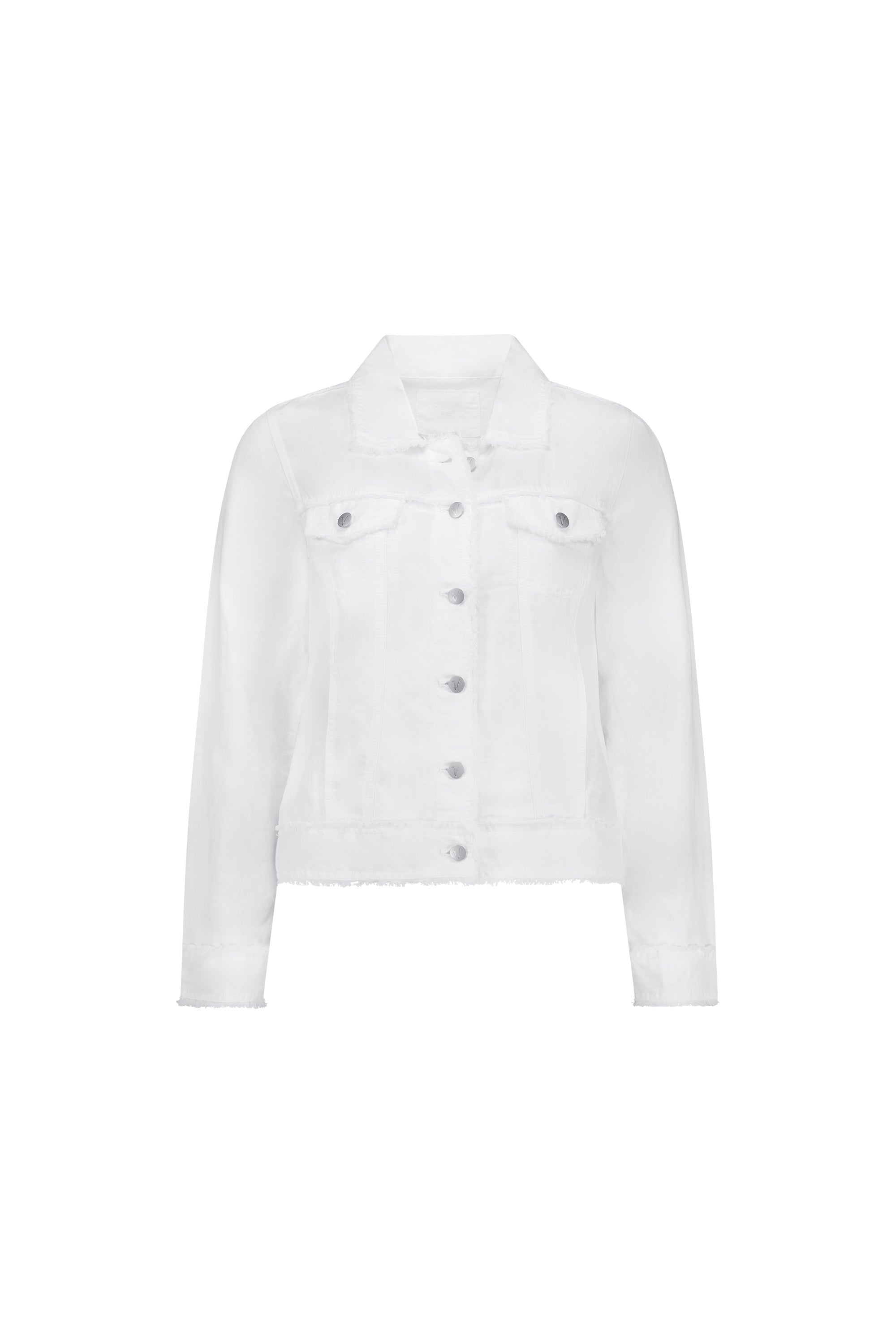This button-up jacket is made from a linen-viscose blend and features frayed seam detailing for a textured look. Designed in a classic denim jacket shape with metal jean buttons and a relaxed fit, it’s an easy layering piece for everyday style.