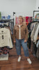 - Button up front with metal 'V' logo jean buttons